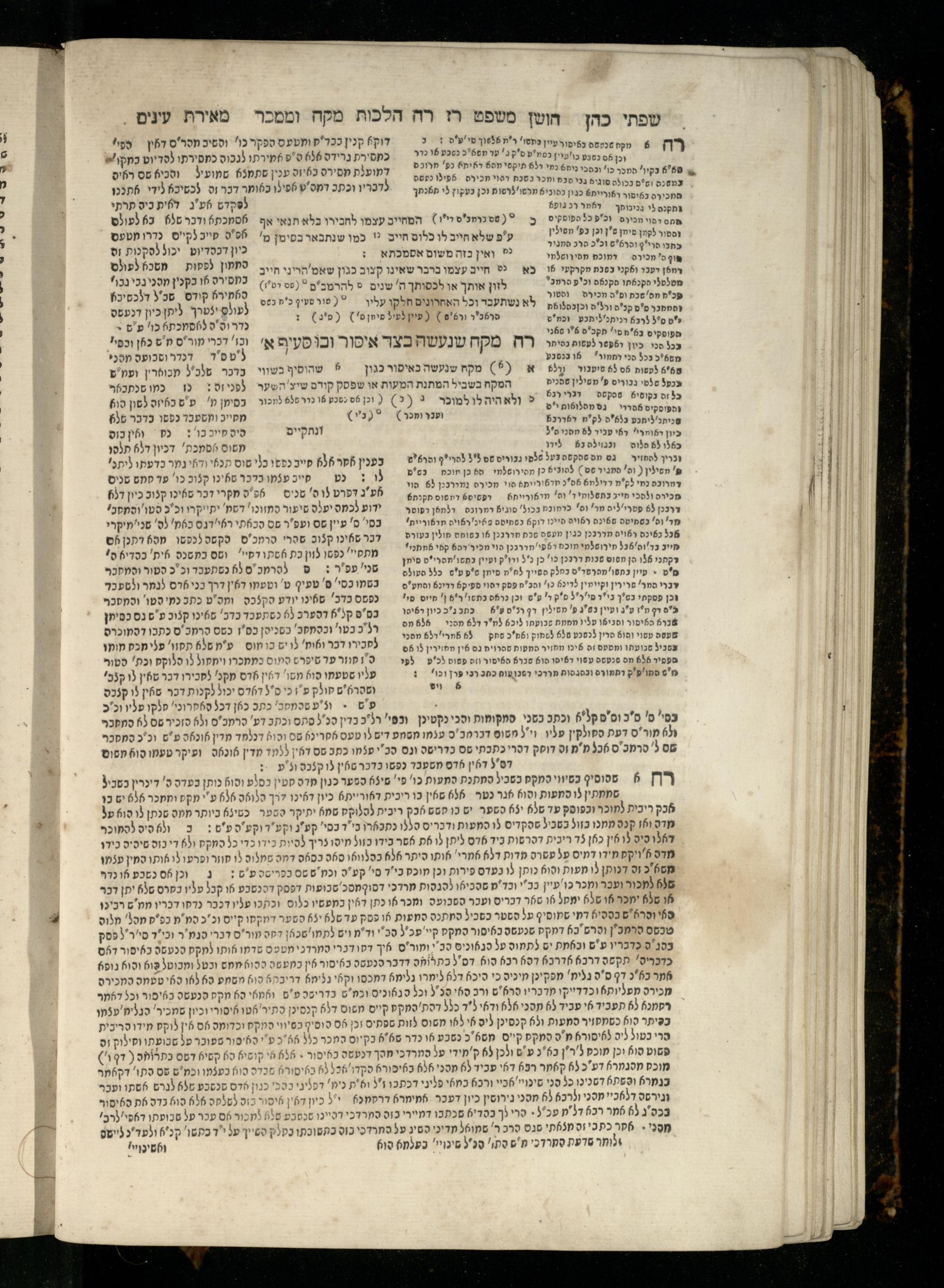 Sefer Torat kohanim : Shulḥan ʿarukh mi-ṭur Ḥoshen mishpaṭ : ʿim ha-beʾurim h.h. Meʾirat ʿenayim ṿe-Śifte kohen ; ... ṿe-hagahotaṿ ... Yosef Ḳaro z.l. ṿe-m.v.h.r.r. Mosheh Iserlez z.l. ...ספר תורת כהנים : שלחן ערוך מטור חשן משפט ; עם הביאורים ה״ה מאירת עינים ושפתי הכן ... והגהותיו מוהר״ר יוסף קארו ז״ל ומוהר״ר משה איסרלז ז״ל ...