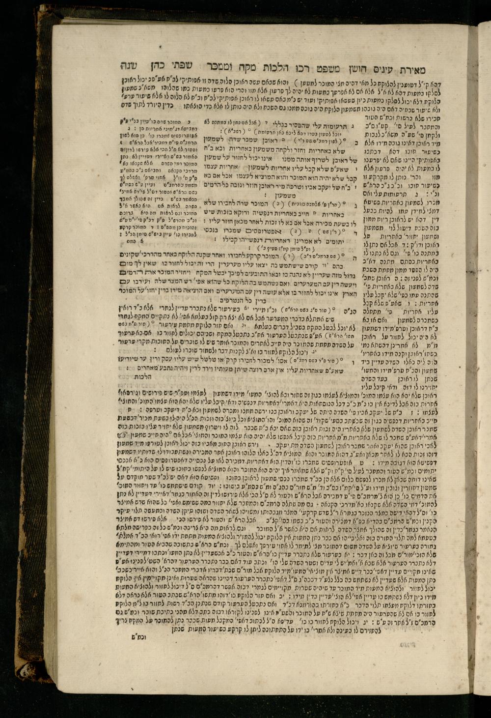 Sefer Torat kohanim : Shulḥan ʿarukh mi-ṭur Ḥoshen mishpaṭ : ʿim ha-beʾurim h.h. Meʾirat ʿenayim ṿe-Śifte kohen ; ... ṿe-hagahotaṿ ... Yosef Ḳaro z.l. ṿe-m.v.h.r.r. Mosheh Iserlez z.l. ...ספר תורת כהנים : שלחן ערוך מטור חשן משפט ; עם הביאורים ה״ה מאירת עינים ושפתי הכן ... והגהותיו מוהר״ר יוסף קארו ז״ל ומוהר״ר משה איסרלז ז״ל ...