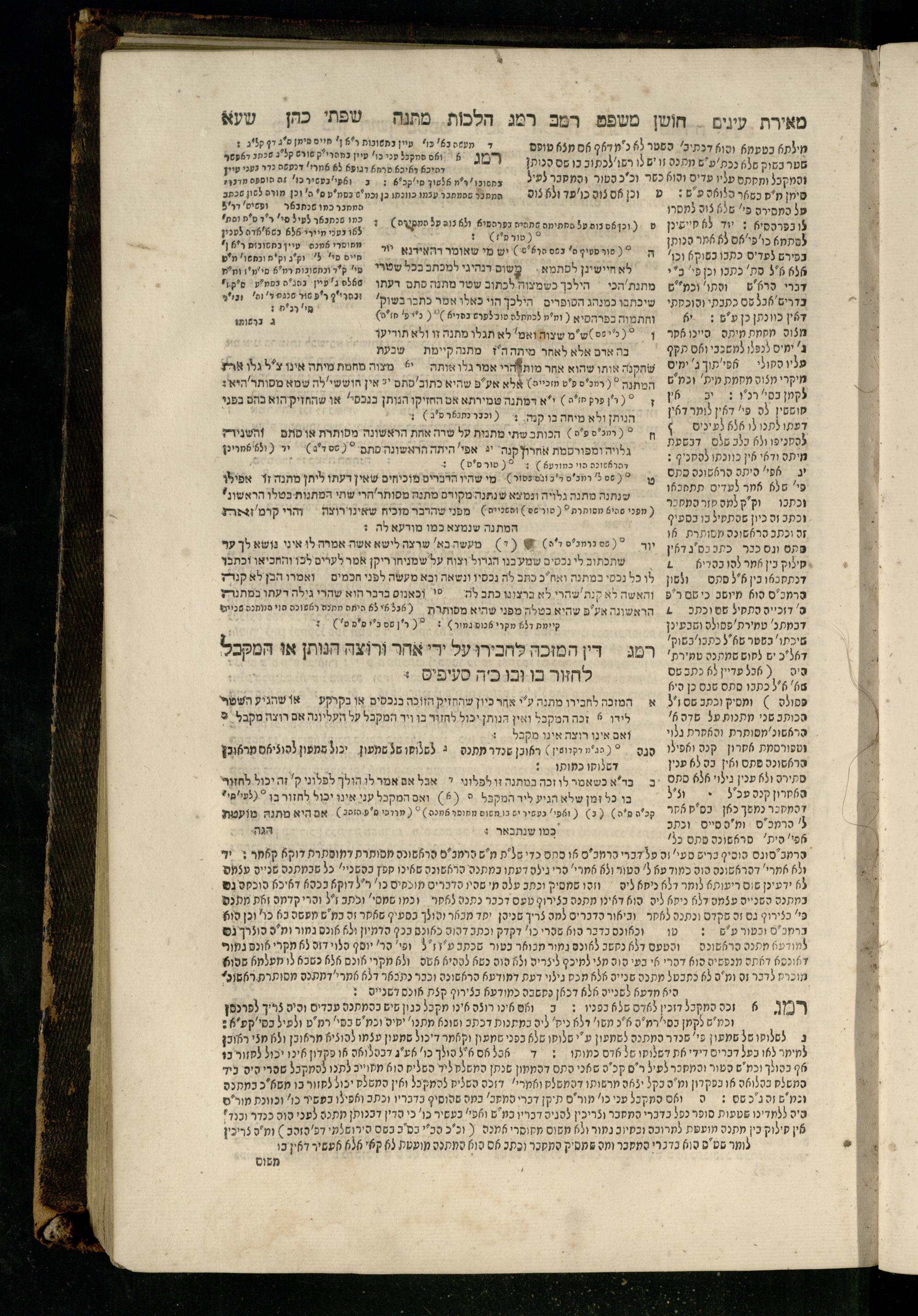 Sefer Torat kohanim : Shulḥan ʿarukh mi-ṭur Ḥoshen mishpaṭ : ʿim ha-beʾurim h.h. Meʾirat ʿenayim ṿe-Śifte kohen ; ... ṿe-hagahotaṿ ... Yosef Ḳaro z.l. ṿe-m.v.h.r.r. Mosheh Iserlez z.l. ...ספר תורת כהנים : שלחן ערוך מטור חשן משפט ; עם הביאורים ה״ה מאירת עינים ושפתי הכן ... והגהותיו מוהר״ר יוסף קארו ז״ל ומוהר״ר משה איסרלז ז״ל ...