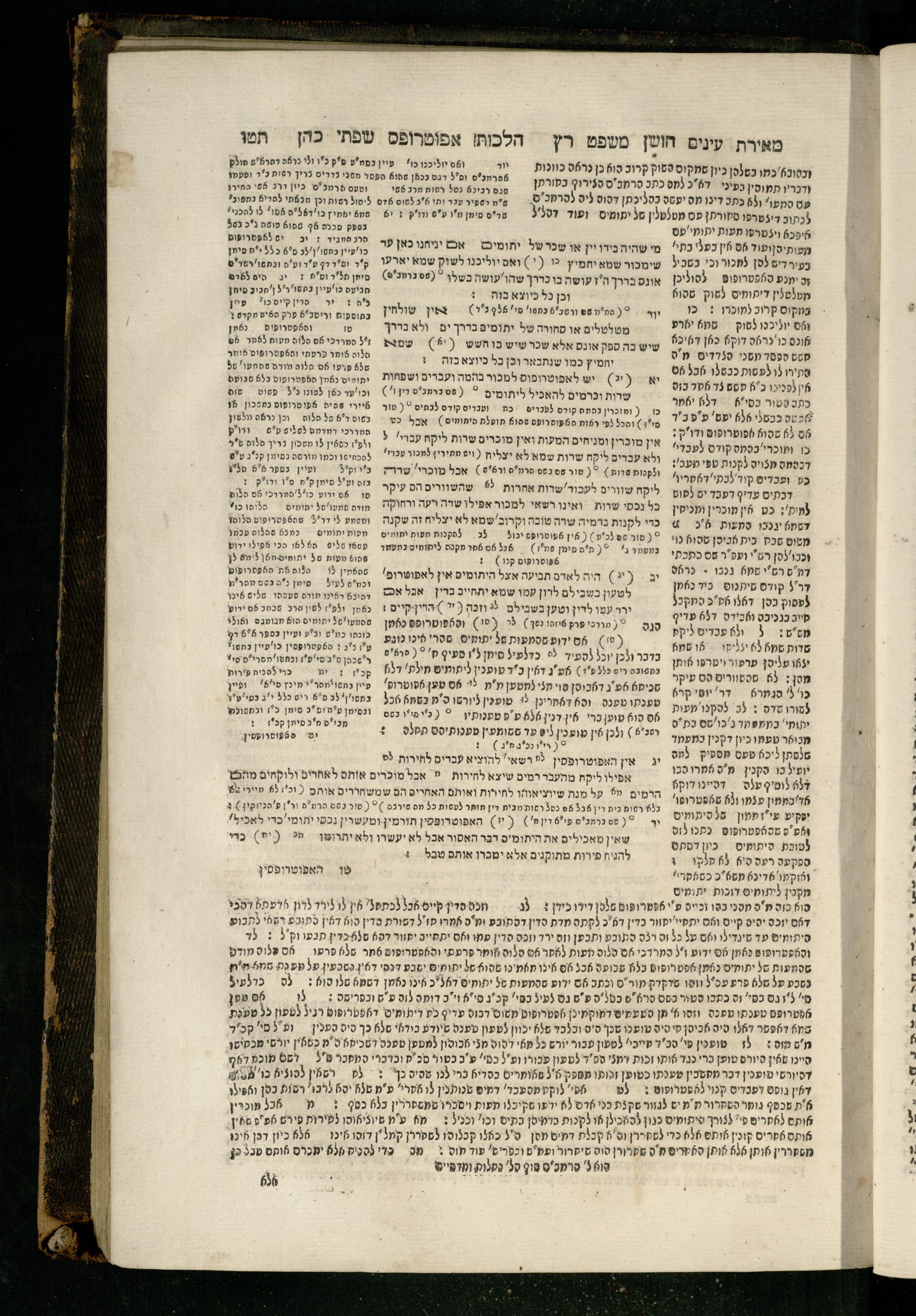 Sefer Torat kohanim : Shulḥan ʿarukh mi-ṭur Ḥoshen mishpaṭ : ʿim ha-beʾurim h.h. Meʾirat ʿenayim ṿe-Śifte kohen ; ... ṿe-hagahotaṿ ... Yosef Ḳaro z.l. ṿe-m.v.h.r.r. Mosheh Iserlez z.l. ...ספר תורת כהנים : שלחן ערוך מטור חשן משפט ; עם הביאורים ה״ה מאירת עינים ושפתי הכן ... והגהותיו מוהר״ר יוסף קארו ז״ל ומוהר״ר משה איסרלז ז״ל ...