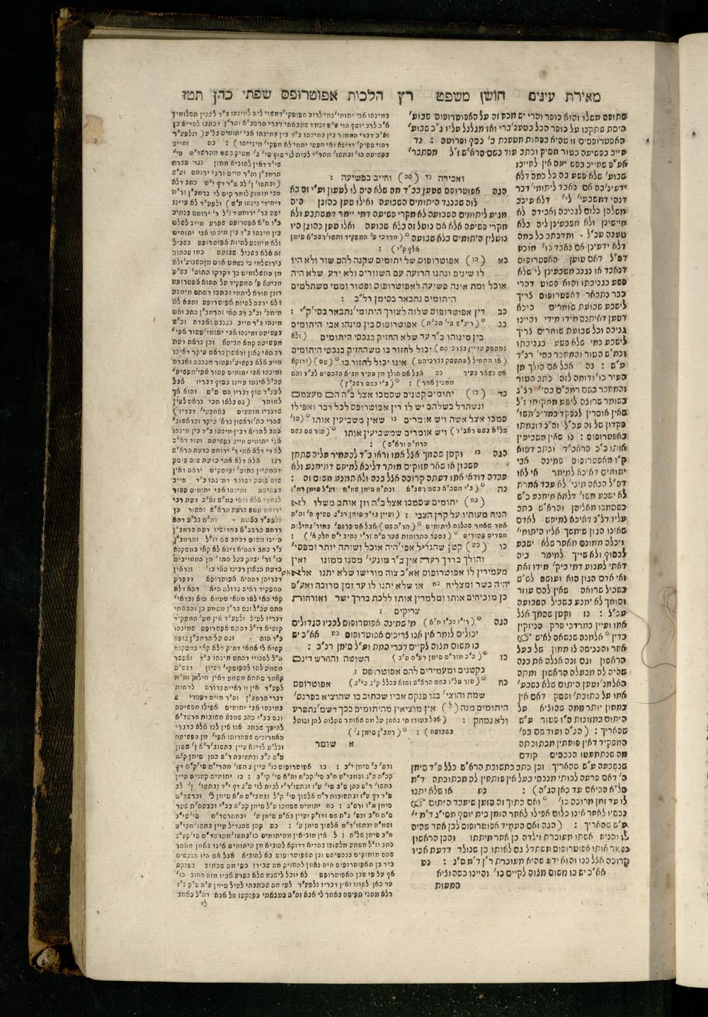 Sefer Torat kohanim : Shulḥan ʿarukh mi-ṭur Ḥoshen mishpaṭ : ʿim ha-beʾurim h.h. Meʾirat ʿenayim ṿe-Śifte kohen ; ... ṿe-hagahotaṿ ... Yosef Ḳaro z.l. ṿe-m.v.h.r.r. Mosheh Iserlez z.l. ...ספר תורת כהנים : שלחן ערוך מטור חשן משפט ; עם הביאורים ה״ה מאירת עינים ושפתי הכן ... והגהותיו מוהר״ר יוסף קארו ז״ל ומוהר״ר משה איסרלז ז״ל ...