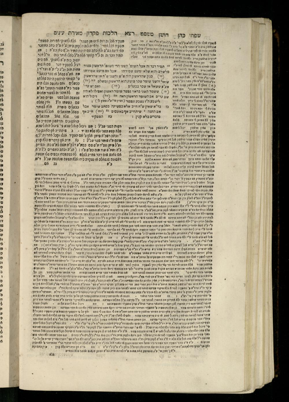 Sefer Torat kohanim : Shulḥan ʿarukh mi-ṭur Ḥoshen mishpaṭ : ʿim ha-beʾurim h.h. Meʾirat ʿenayim ṿe-Śifte kohen ; ... ṿe-hagahotaṿ ... Yosef Ḳaro z.l. ṿe-m.v.h.r.r. Mosheh Iserlez z.l. ...ספר תורת כהנים : שלחן ערוך מטור חשן משפט ; עם הביאורים ה״ה מאירת עינים ושפתי הכן ... והגהותיו מוהר״ר יוסף קארו ז״ל ומוהר״ר משה איסרלז ז״ל ...