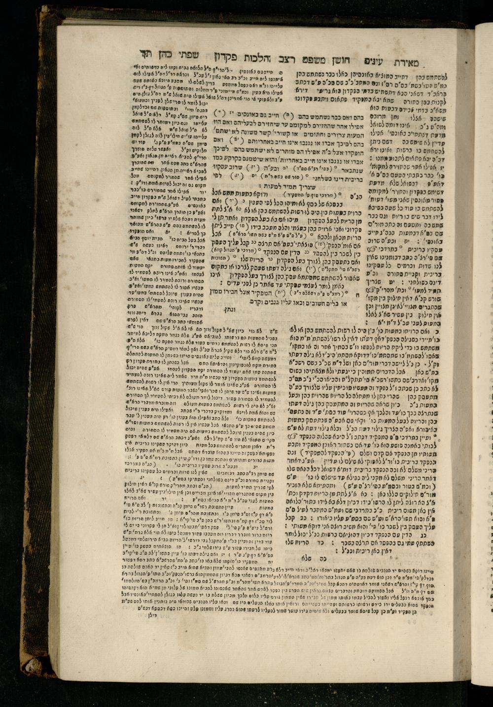 Sefer Torat kohanim : Shulḥan ʿarukh mi-ṭur Ḥoshen mishpaṭ : ʿim ha-beʾurim h.h. Meʾirat ʿenayim ṿe-Śifte kohen ; ... ṿe-hagahotaṿ ... Yosef Ḳaro z.l. ṿe-m.v.h.r.r. Mosheh Iserlez z.l. ...ספר תורת כהנים : שלחן ערוך מטור חשן משפט ; עם הביאורים ה״ה מאירת עינים ושפתי הכן ... והגהותיו מוהר״ר יוסף קארו ז״ל ומוהר״ר משה איסרלז ז״ל ...