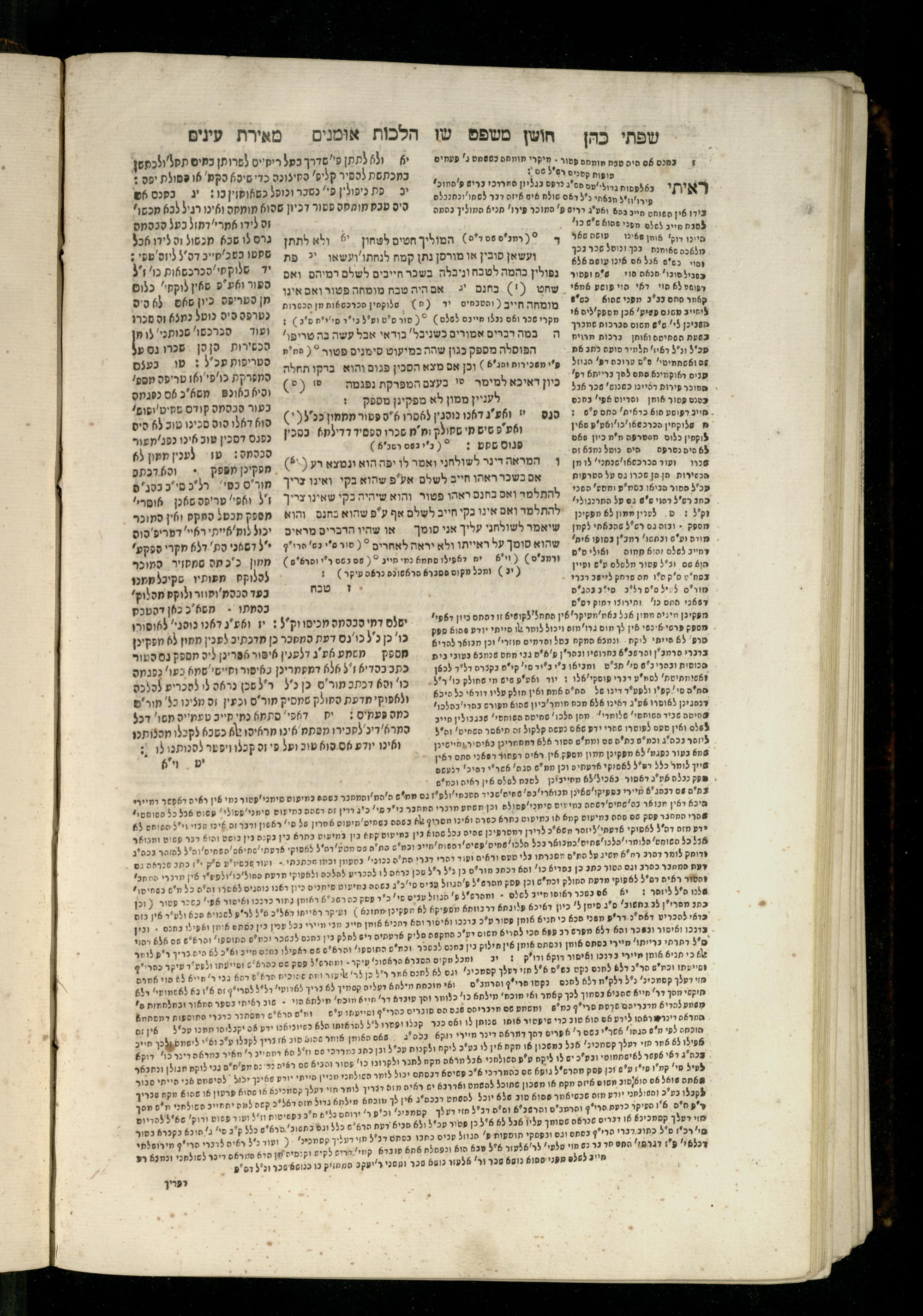 Sefer Torat kohanim : Shulḥan ʿarukh mi-ṭur Ḥoshen mishpaṭ : ʿim ha-beʾurim h.h. Meʾirat ʿenayim ṿe-Śifte kohen ; ... ṿe-hagahotaṿ ... Yosef Ḳaro z.l. ṿe-m.v.h.r.r. Mosheh Iserlez z.l. ...ספר תורת כהנים : שלחן ערוך מטור חשן משפט ; עם הביאורים ה״ה מאירת עינים ושפתי הכן ... והגהותיו מוהר״ר יוסף קארו ז״ל ומוהר״ר משה איסרלז ז״ל ...
