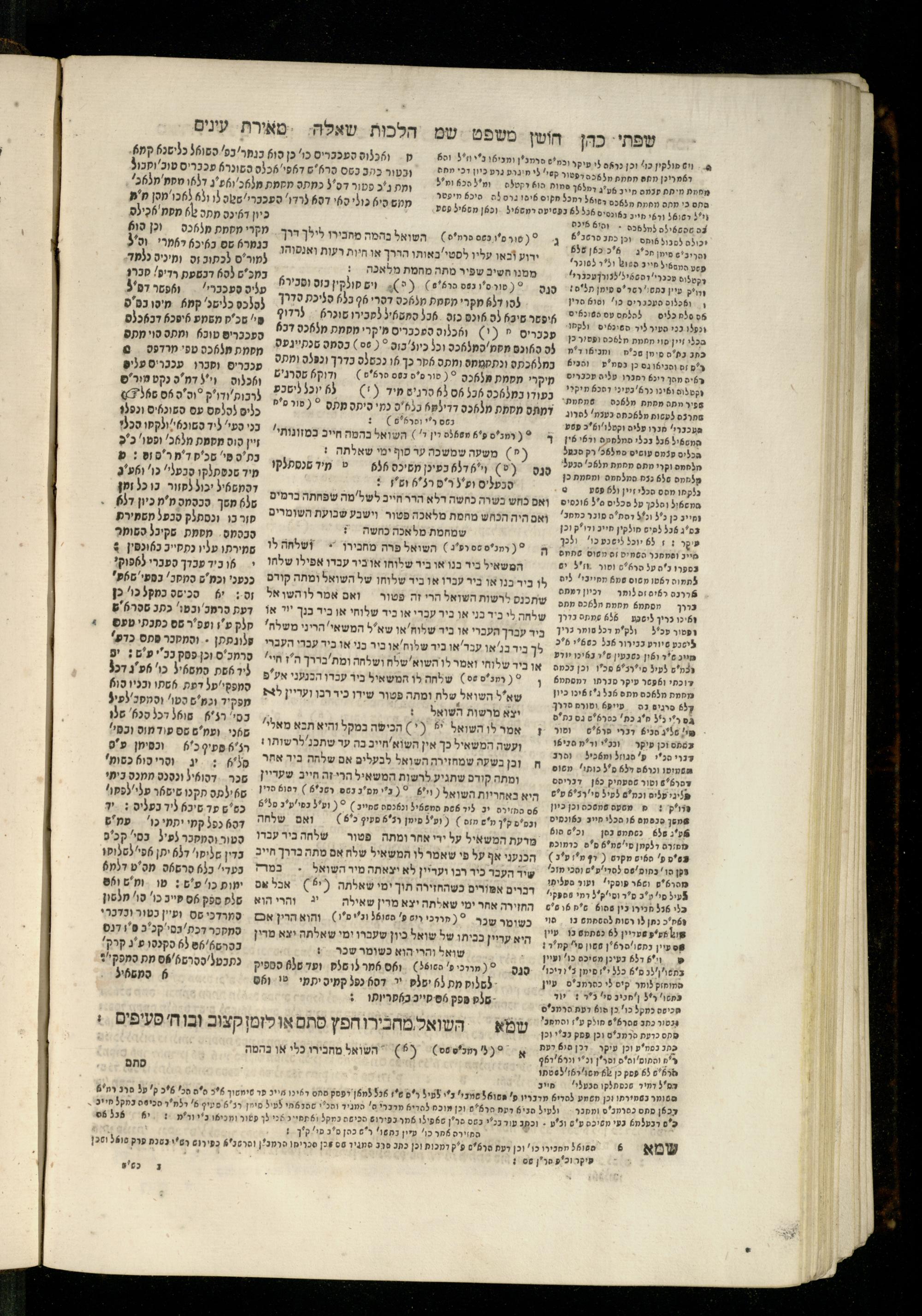Sefer Torat kohanim : Shulḥan ʿarukh mi-ṭur Ḥoshen mishpaṭ : ʿim ha-beʾurim h.h. Meʾirat ʿenayim ṿe-Śifte kohen ; ... ṿe-hagahotaṿ ... Yosef Ḳaro z.l. ṿe-m.v.h.r.r. Mosheh Iserlez z.l. ...ספר תורת כהנים : שלחן ערוך מטור חשן משפט ; עם הביאורים ה״ה מאירת עינים ושפתי הכן ... והגהותיו מוהר״ר יוסף קארו ז״ל ומוהר״ר משה איסרלז ז״ל ...