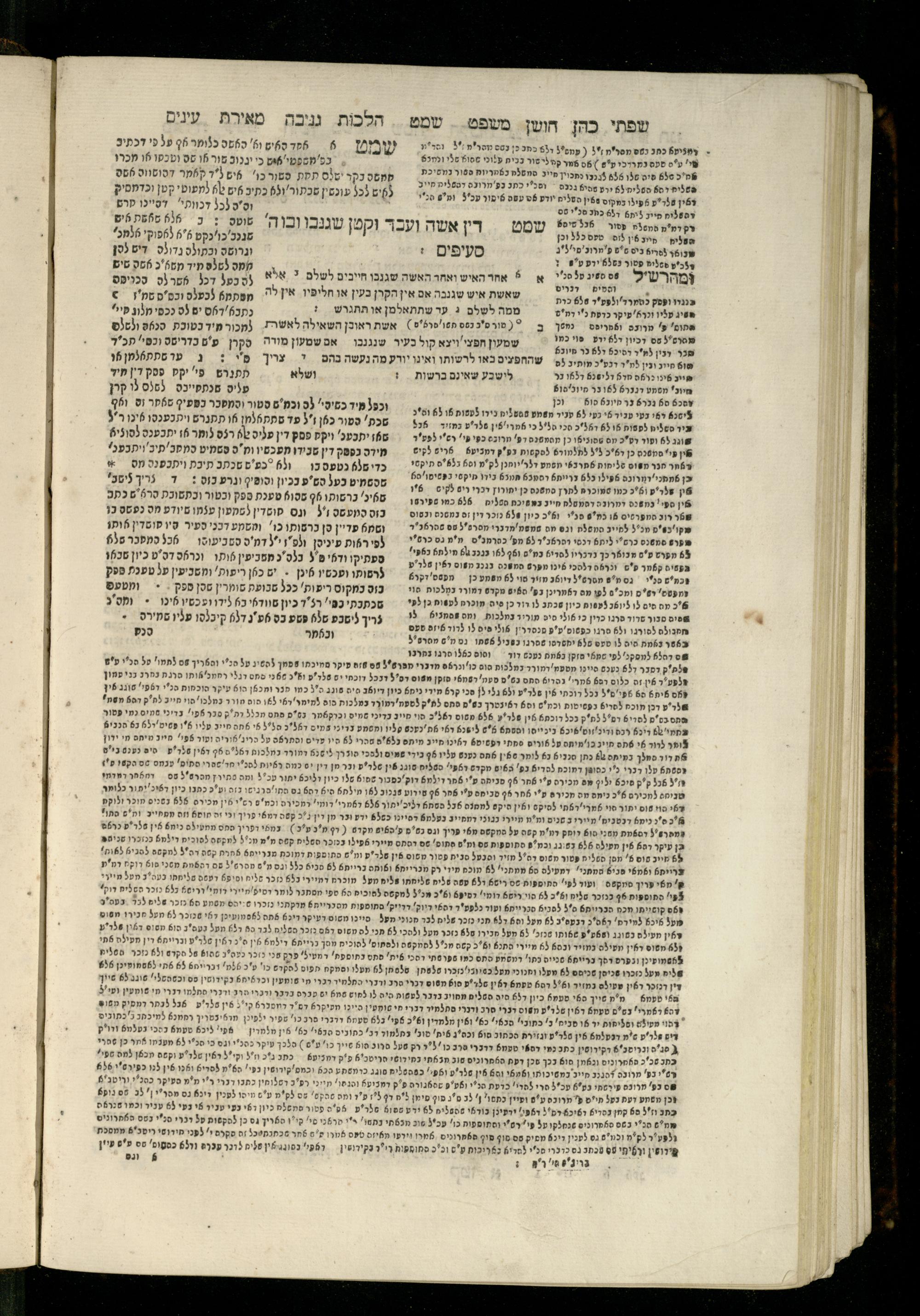 Sefer Torat kohanim : Shulḥan ʿarukh mi-ṭur Ḥoshen mishpaṭ : ʿim ha-beʾurim h.h. Meʾirat ʿenayim ṿe-Śifte kohen ; ... ṿe-hagahotaṿ ... Yosef Ḳaro z.l. ṿe-m.v.h.r.r. Mosheh Iserlez z.l. ...ספר תורת כהנים : שלחן ערוך מטור חשן משפט ; עם הביאורים ה״ה מאירת עינים ושפתי הכן ... והגהותיו מוהר״ר יוסף קארו ז״ל ומוהר״ר משה איסרלז ז״ל ...