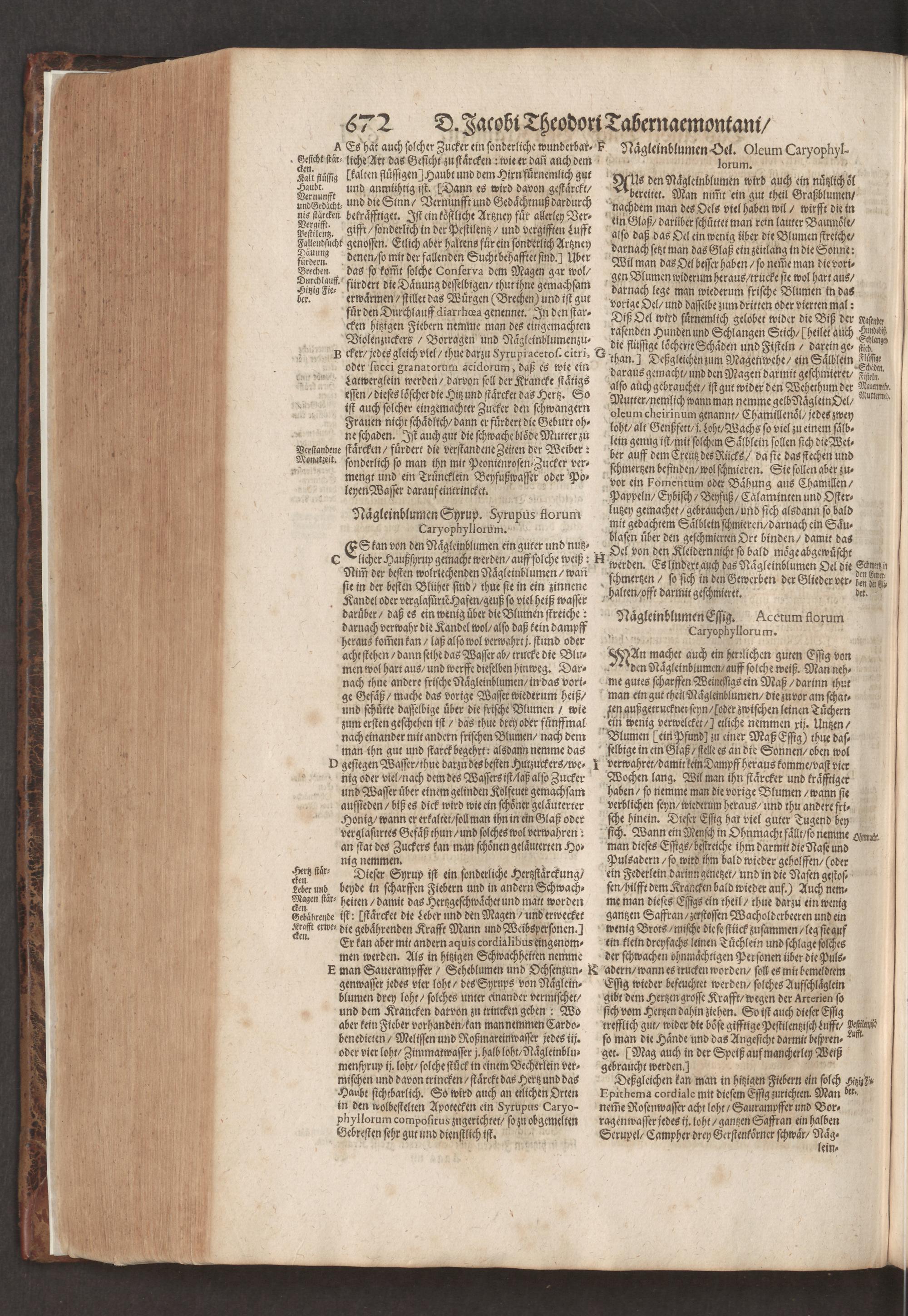 D. Jacobi Theodori Tabernaemontani, Neu vollkommen Kräuter-Buch : Darinnen Uber 3000. Kräuter/ mit schönen und kunstlichen Figuren/ auch deren Underscheid und Würckung/ samt ihren Namen in mancherley Sprachen/ beschrieben: Desgleichen auch/ wie dieselbige in allerhand Kranckheiten/ beyde der Menschen und des Viehs/ sollen angewendet und gebraucht werden/ angezeigt wird. Erstlichen durch Casparum Bauhinum D. und Profess. Basil. mit vielen neuen Figuren/ nutzlichen Artzneyen/ und anderem/ mit sonderem Fleis gebesseret/ Zum Andern Durch Hieronymum Bauhinum D. und Profess. Basil. mit sehr nutzlichen Marginalien, Synonimis, neuen Registeren und anderem vermehrt