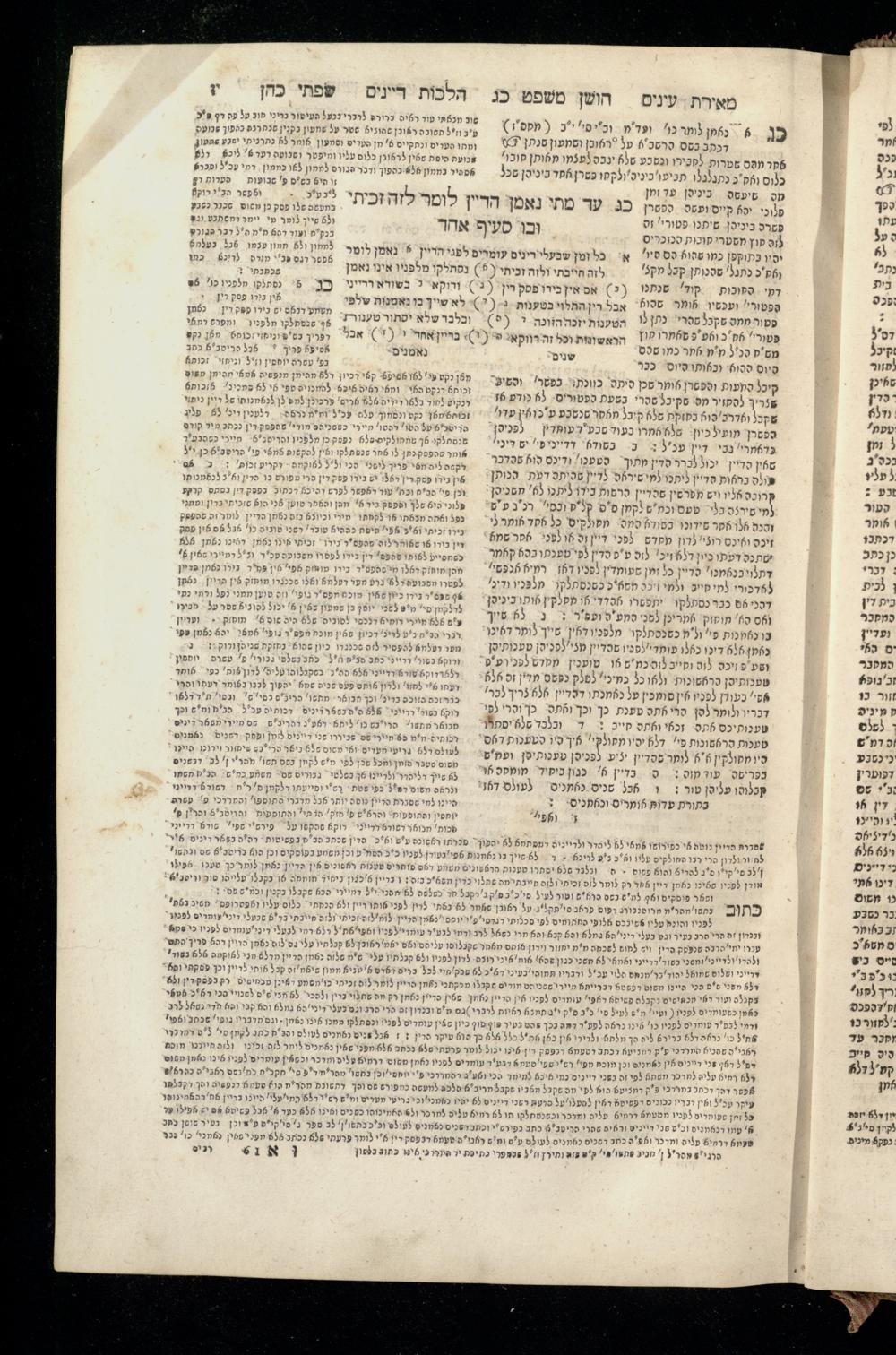 Sefer Torat kohanim : Shulḥan ʿarukh mi-ṭur Ḥoshen mishpaṭ : ʿim ha-beʾurim h.h. Meʾirat ʿenayim ṿe-Śifte kohen ; ... ṿe-hagahotaṿ ... Yosef Ḳaro z.l. ṿe-m.v.h.r.r. Mosheh Iserlez z.l. ...ספר תורת כהנים : שלחן ערוך מטור חשן משפט ; עם הביאורים ה״ה מאירת עינים ושפתי הכן ... והגהותיו מוהר״ר יוסף קארו ז״ל ומוהר״ר משה איסרלז ז״ל ...