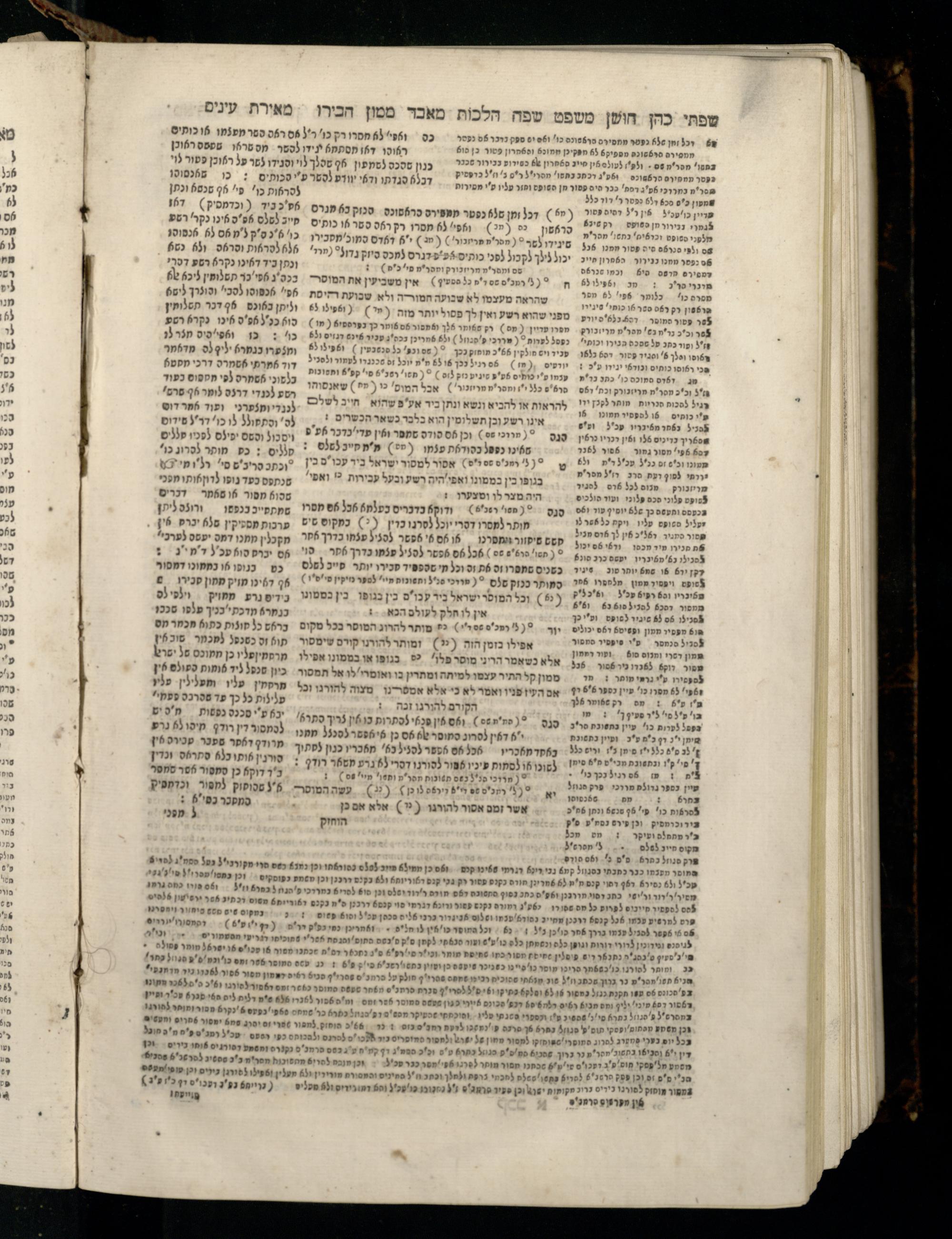 Sefer Torat kohanim : Shulḥan ʿarukh mi-ṭur Ḥoshen mishpaṭ : ʿim ha-beʾurim h.h. Meʾirat ʿenayim ṿe-Śifte kohen ; ... ṿe-hagahotaṿ ... Yosef Ḳaro z.l. ṿe-m.v.h.r.r. Mosheh Iserlez z.l. ...ספר תורת כהנים : שלחן ערוך מטור חשן משפט ; עם הביאורים ה״ה מאירת עינים ושפתי הכן ... והגהותיו מוהר״ר יוסף קארו ז״ל ומוהר״ר משה איסרלז ז״ל ...