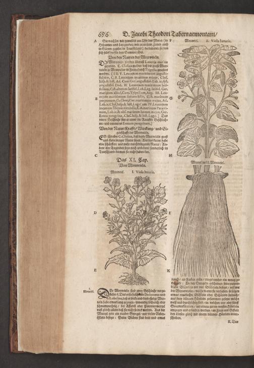 D. Jacobi Theodori Tabernaemontani, Neu vollkommen Kräuter-Buch : Darinnen Uber 3000. Kräuter/ mit schönen und kunstlichen Figuren/ auch deren Underscheid und Würckung/ samt ihren Namen in mancherley Sprachen/ beschrieben: Desgleichen auch/ wie dieselbige in allerhand Kranckheiten/ beyde der Menschen und des Viehs/ sollen angewendet und gebraucht werden/ angezeigt wird. Erstlichen durch Casparum Bauhinum D. und Profess. Basil. mit vielen neuen Figuren/ nutzlichen Artzneyen/ und anderem/ mit sonderem Fleis gebesseret/ Zum Andern Durch Hieronymum Bauhinum D. und Profess. Basil. mit sehr nutzlichen Marginalien, Synonimis, neuen Registeren und anderem vermehrt