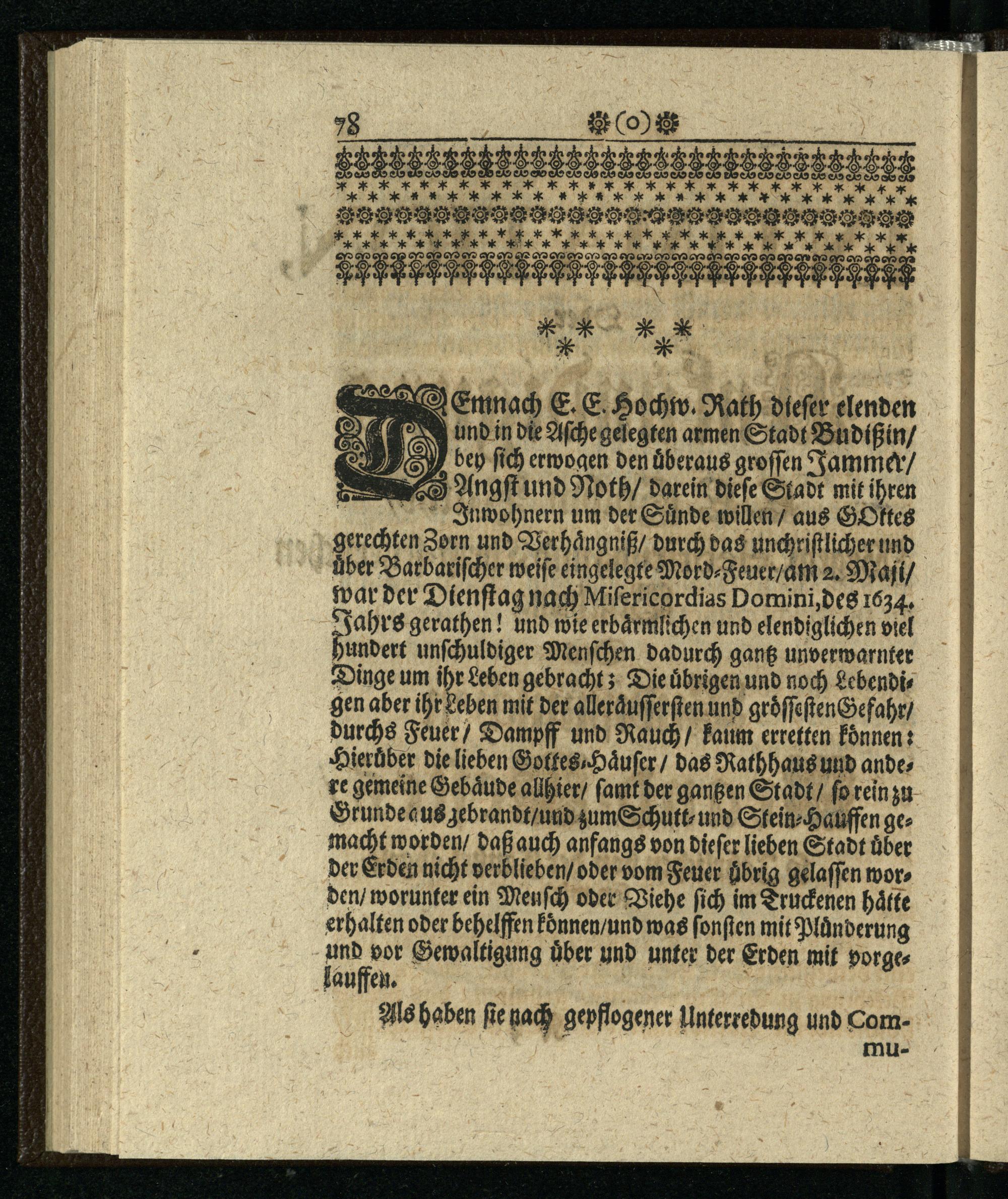 Tabeera Budissinæ, Oder Budißinische Brand-Stelle, Zeigend, Was vor, in und nach erbärmlicher Einäscherung Der Ober-Lausitzer Haupt-Stadt Budißin Anno 1634. den 2. Maji vorgegangen, Der armen abgebrannten Bürgerschafft so wohl zu Trost, als Rettung Ihrer Unschuld, ehemals entworffen von Tit. Herrn M. Johann Zeidlern, Der Evangel. Kirchen und Schulen allda zur selbigen Zeit Pastore und Inspectore, Mit Tit. Hrn. M. Heinrich Basilii Zeidlers Beschreibung der Schwedischen Belagerung und anderer Budißinischen Merckwürdigkeiten ab Anno 1631. ad annum 1641.