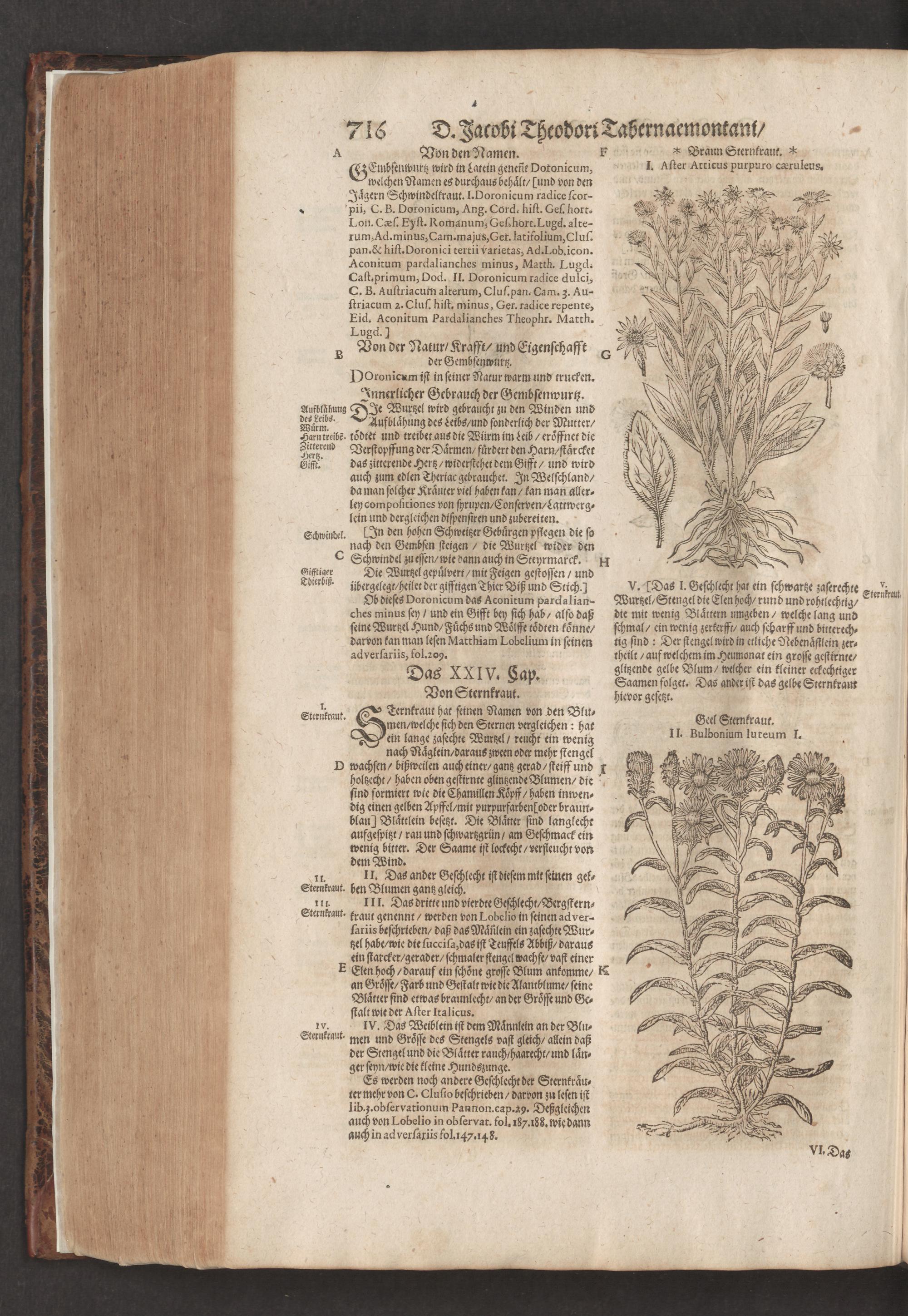 D. Jacobi Theodori Tabernaemontani, Neu vollkommen Kräuter-Buch : Darinnen Uber 3000. Kräuter/ mit schönen und kunstlichen Figuren/ auch deren Underscheid und Würckung/ samt ihren Namen in mancherley Sprachen/ beschrieben: Desgleichen auch/ wie dieselbige in allerhand Kranckheiten/ beyde der Menschen und des Viehs/ sollen angewendet und gebraucht werden/ angezeigt wird. Erstlichen durch Casparum Bauhinum D. und Profess. Basil. mit vielen neuen Figuren/ nutzlichen Artzneyen/ und anderem/ mit sonderem Fleis gebesseret/ Zum Andern Durch Hieronymum Bauhinum D. und Profess. Basil. mit sehr nutzlichen Marginalien, Synonimis, neuen Registeren und anderem vermehrt