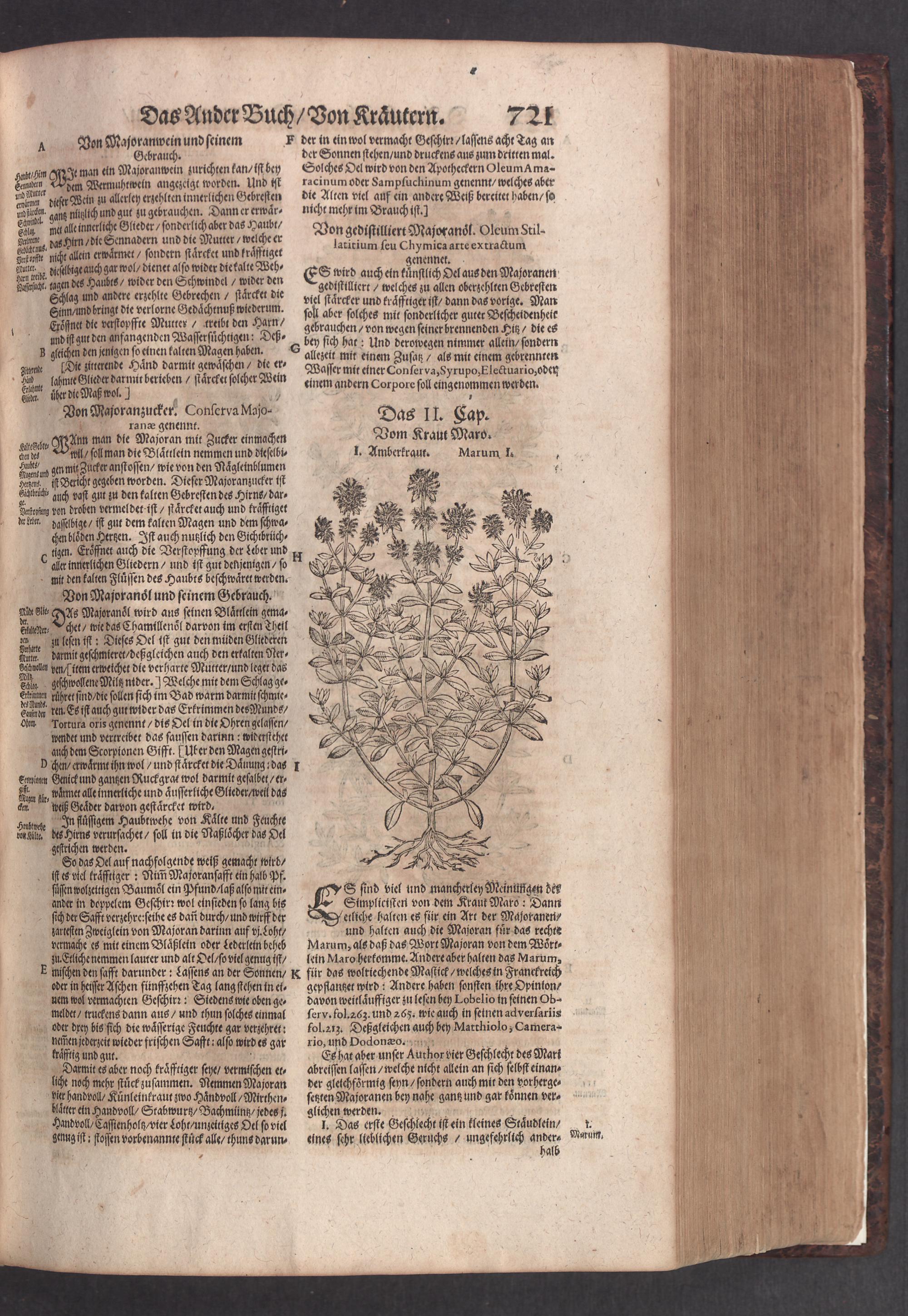 D. Jacobi Theodori Tabernaemontani, Neu vollkommen Kräuter-Buch : Darinnen Uber 3000. Kräuter/ mit schönen und kunstlichen Figuren/ auch deren Underscheid und Würckung/ samt ihren Namen in mancherley Sprachen/ beschrieben: Desgleichen auch/ wie dieselbige in allerhand Kranckheiten/ beyde der Menschen und des Viehs/ sollen angewendet und gebraucht werden/ angezeigt wird. Erstlichen durch Casparum Bauhinum D. und Profess. Basil. mit vielen neuen Figuren/ nutzlichen Artzneyen/ und anderem/ mit sonderem Fleis gebesseret/ Zum Andern Durch Hieronymum Bauhinum D. und Profess. Basil. mit sehr nutzlichen Marginalien, Synonimis, neuen Registeren und anderem vermehrt
