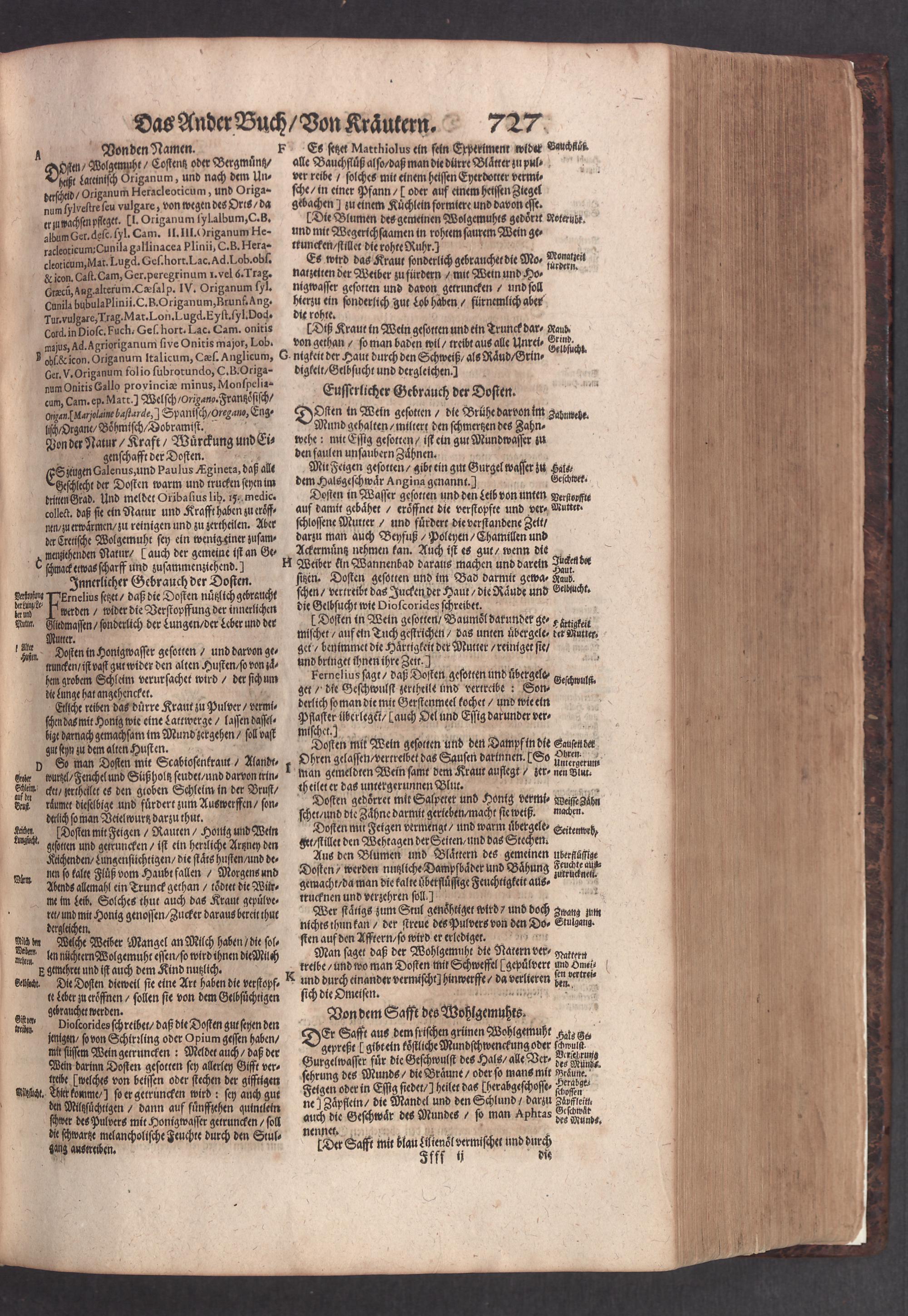D. Jacobi Theodori Tabernaemontani, Neu vollkommen Kräuter-Buch : Darinnen Uber 3000. Kräuter/ mit schönen und kunstlichen Figuren/ auch deren Underscheid und Würckung/ samt ihren Namen in mancherley Sprachen/ beschrieben: Desgleichen auch/ wie dieselbige in allerhand Kranckheiten/ beyde der Menschen und des Viehs/ sollen angewendet und gebraucht werden/ angezeigt wird. Erstlichen durch Casparum Bauhinum D. und Profess. Basil. mit vielen neuen Figuren/ nutzlichen Artzneyen/ und anderem/ mit sonderem Fleis gebesseret/ Zum Andern Durch Hieronymum Bauhinum D. und Profess. Basil. mit sehr nutzlichen Marginalien, Synonimis, neuen Registeren und anderem vermehrt