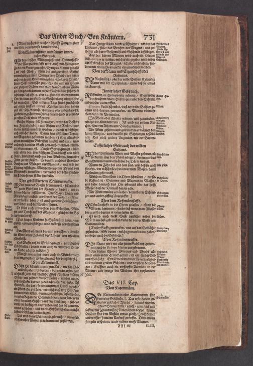 D. Jacobi Theodori Tabernaemontani, Neu vollkommen Kräuter-Buch : Darinnen Uber 3000. Kräuter/ mit schönen und kunstlichen Figuren/ auch deren Underscheid und Würckung/ samt ihren Namen in mancherley Sprachen/ beschrieben: Desgleichen auch/ wie dieselbige in allerhand Kranckheiten/ beyde der Menschen und des Viehs/ sollen angewendet und gebraucht werden/ angezeigt wird. Erstlichen durch Casparum Bauhinum D. und Profess. Basil. mit vielen neuen Figuren/ nutzlichen Artzneyen/ und anderem/ mit sonderem Fleis gebesseret/ Zum Andern Durch Hieronymum Bauhinum D. und Profess. Basil. mit sehr nutzlichen Marginalien, Synonimis, neuen Registeren und anderem vermehrt