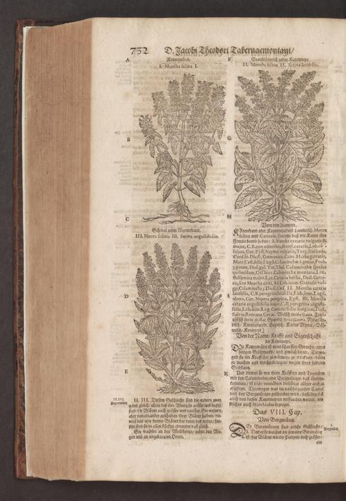 D. Jacobi Theodori Tabernaemontani, Neu vollkommen Kräuter-Buch : Darinnen Uber 3000. Kräuter/ mit schönen und kunstlichen Figuren/ auch deren Underscheid und Würckung/ samt ihren Namen in mancherley Sprachen/ beschrieben: Desgleichen auch/ wie dieselbige in allerhand Kranckheiten/ beyde der Menschen und des Viehs/ sollen angewendet und gebraucht werden/ angezeigt wird. Erstlichen durch Casparum Bauhinum D. und Profess. Basil. mit vielen neuen Figuren/ nutzlichen Artzneyen/ und anderem/ mit sonderem Fleis gebesseret/ Zum Andern Durch Hieronymum Bauhinum D. und Profess. Basil. mit sehr nutzlichen Marginalien, Synonimis, neuen Registeren und anderem vermehrt