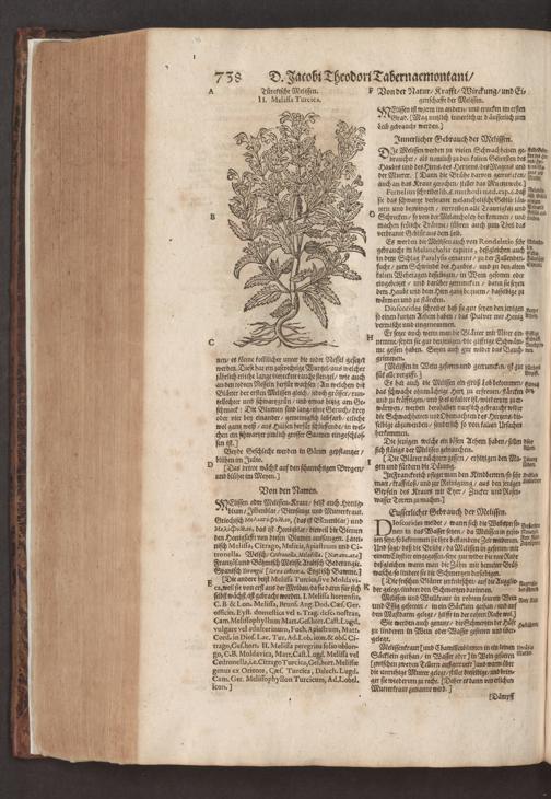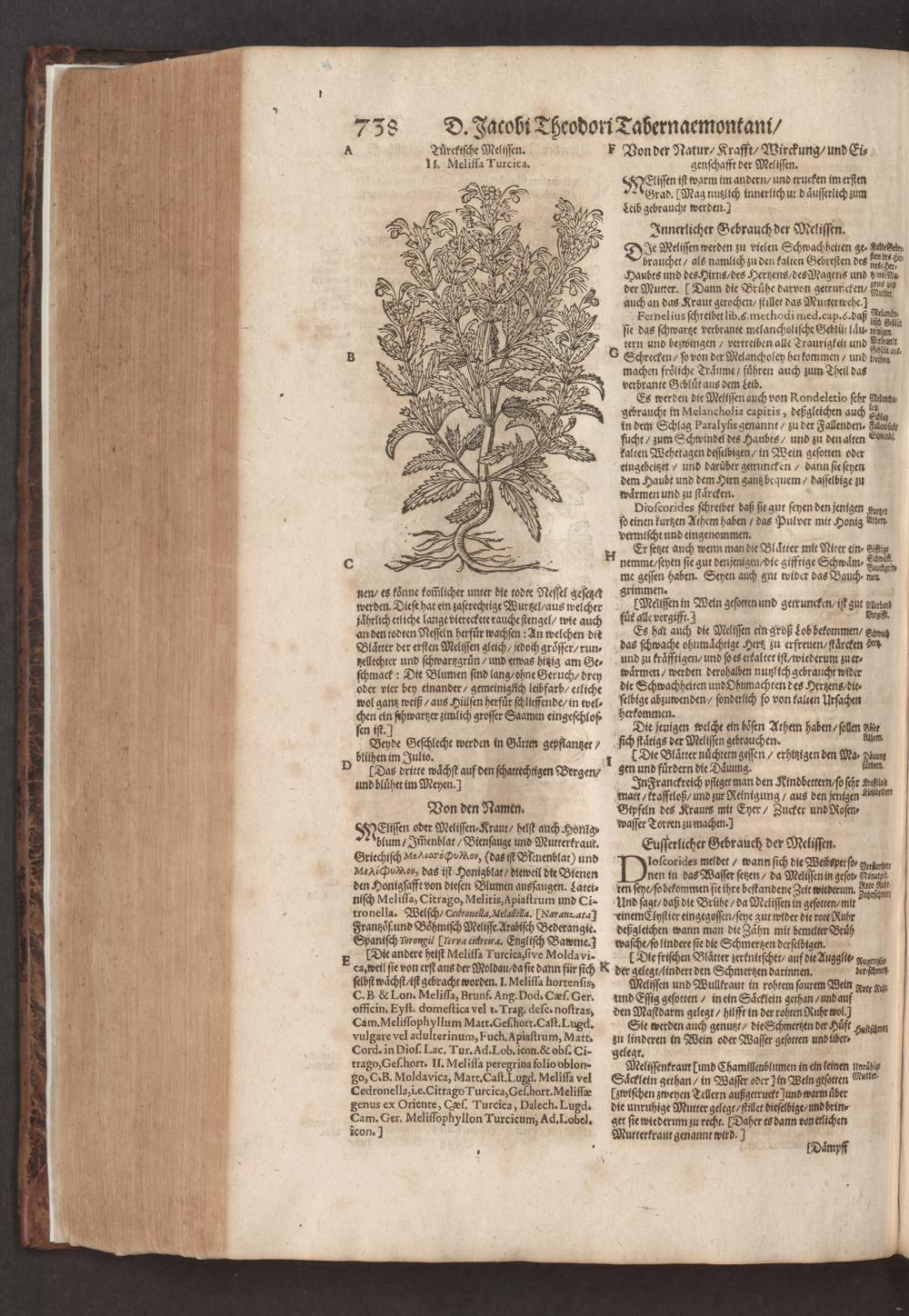D. Jacobi Theodori Tabernaemontani, Neu vollkommen Kräuter-Buch : Darinnen Uber 3000. Kräuter/ mit schönen und kunstlichen Figuren/ auch deren Underscheid und Würckung/ samt ihren Namen in mancherley Sprachen/ beschrieben: Desgleichen auch/ wie dieselbige in allerhand Kranckheiten/ beyde der Menschen und des Viehs/ sollen angewendet und gebraucht werden/ angezeigt wird. Erstlichen durch Casparum Bauhinum D. und Profess. Basil. mit vielen neuen Figuren/ nutzlichen Artzneyen/ und anderem/ mit sonderem Fleis gebesseret/ Zum Andern Durch Hieronymum Bauhinum D. und Profess. Basil. mit sehr nutzlichen Marginalien, Synonimis, neuen Registeren und anderem vermehrt