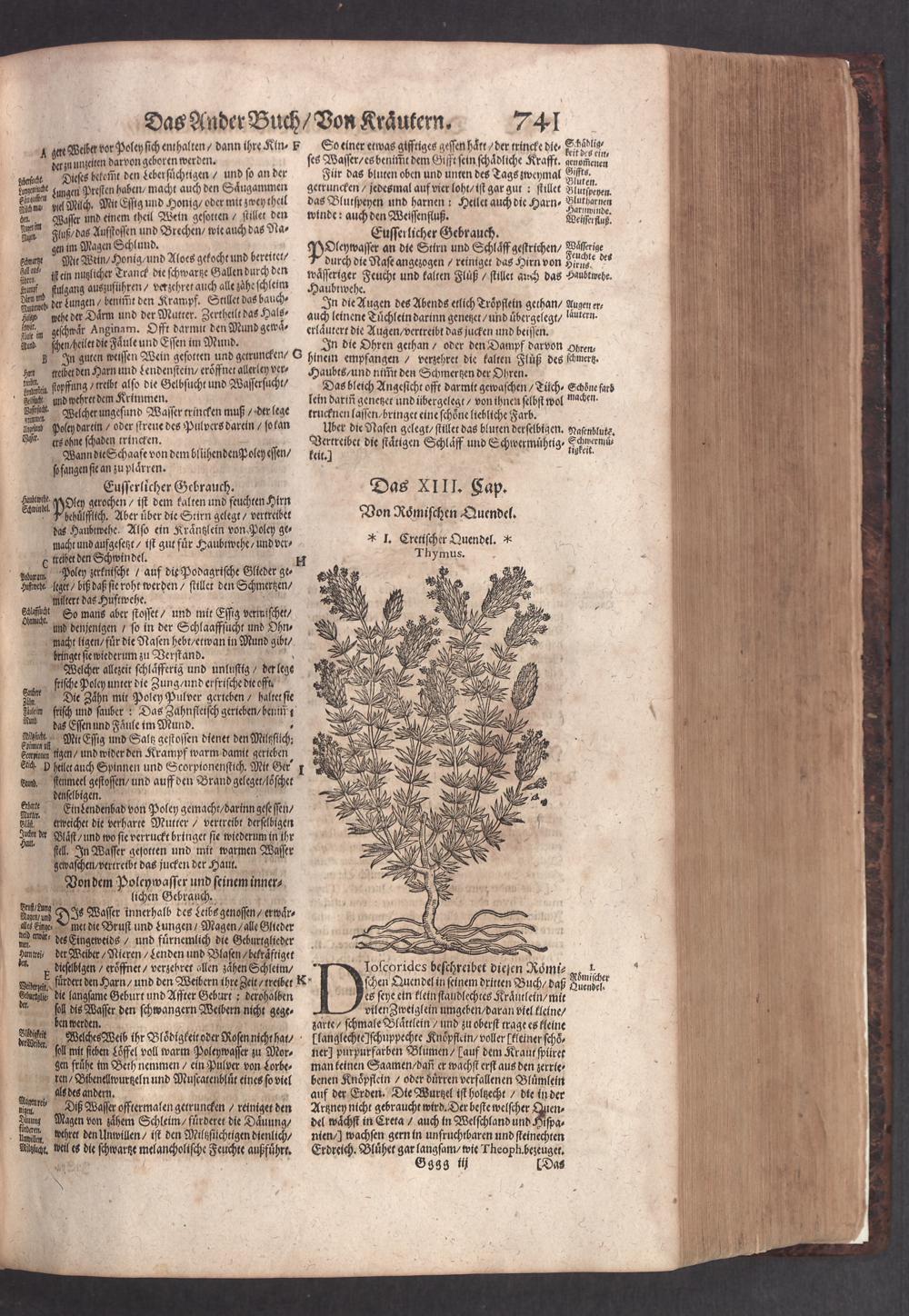 D. Jacobi Theodori Tabernaemontani, Neu vollkommen Kräuter-Buch : Darinnen Uber 3000. Kräuter/ mit schönen und kunstlichen Figuren/ auch deren Underscheid und Würckung/ samt ihren Namen in mancherley Sprachen/ beschrieben: Desgleichen auch/ wie dieselbige in allerhand Kranckheiten/ beyde der Menschen und des Viehs/ sollen angewendet und gebraucht werden/ angezeigt wird. Erstlichen durch Casparum Bauhinum D. und Profess. Basil. mit vielen neuen Figuren/ nutzlichen Artzneyen/ und anderem/ mit sonderem Fleis gebesseret/ Zum Andern Durch Hieronymum Bauhinum D. und Profess. Basil. mit sehr nutzlichen Marginalien, Synonimis, neuen Registeren und anderem vermehrt
