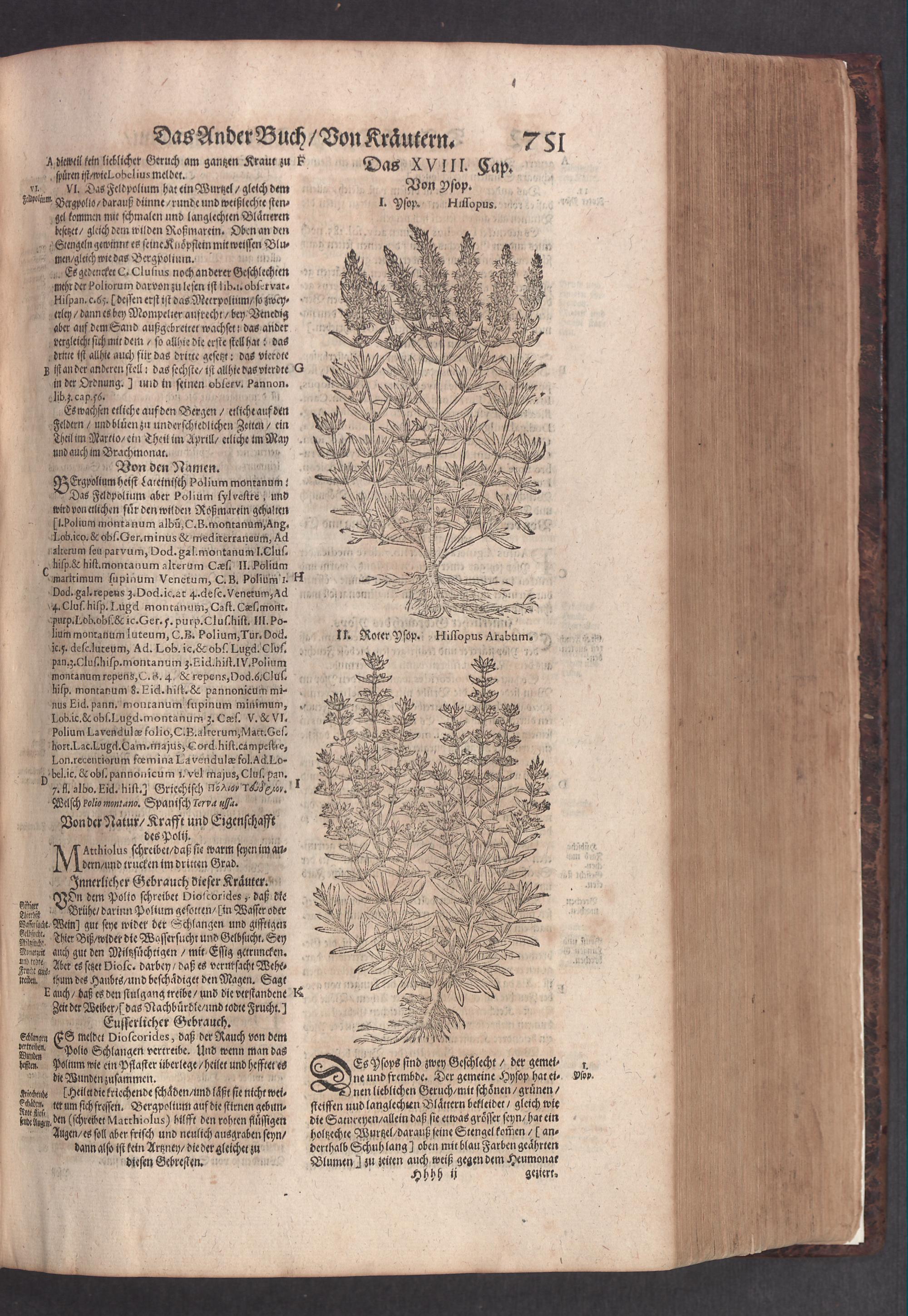 D. Jacobi Theodori Tabernaemontani, Neu vollkommen Kräuter-Buch : Darinnen Uber 3000. Kräuter/ mit schönen und kunstlichen Figuren/ auch deren Underscheid und Würckung/ samt ihren Namen in mancherley Sprachen/ beschrieben: Desgleichen auch/ wie dieselbige in allerhand Kranckheiten/ beyde der Menschen und des Viehs/ sollen angewendet und gebraucht werden/ angezeigt wird. Erstlichen durch Casparum Bauhinum D. und Profess. Basil. mit vielen neuen Figuren/ nutzlichen Artzneyen/ und anderem/ mit sonderem Fleis gebesseret/ Zum Andern Durch Hieronymum Bauhinum D. und Profess. Basil. mit sehr nutzlichen Marginalien, Synonimis, neuen Registeren und anderem vermehrt