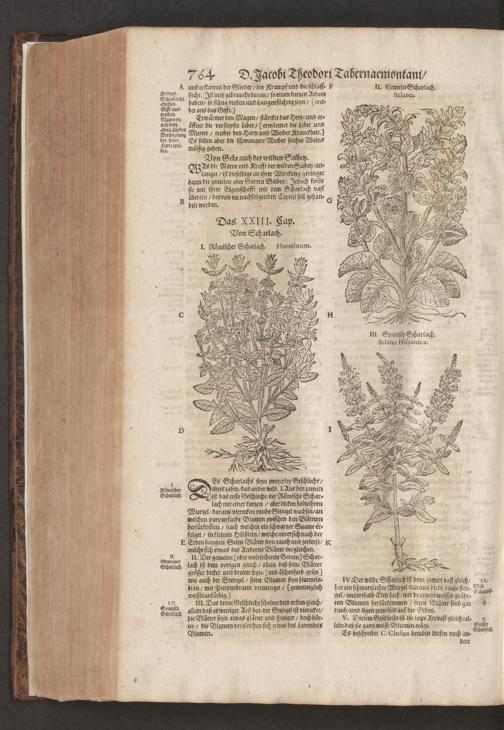 D. Jacobi Theodori Tabernaemontani, Neu vollkommen Kräuter-Buch : Darinnen Uber 3000. Kräuter/ mit schönen und kunstlichen Figuren/ auch deren Underscheid und Würckung/ samt ihren Namen in mancherley Sprachen/ beschrieben: Desgleichen auch/ wie dieselbige in allerhand Kranckheiten/ beyde der Menschen und des Viehs/ sollen angewendet und gebraucht werden/ angezeigt wird. Erstlichen durch Casparum Bauhinum D. und Profess. Basil. mit vielen neuen Figuren/ nutzlichen Artzneyen/ und anderem/ mit sonderem Fleis gebesseret/ Zum Andern Durch Hieronymum Bauhinum D. und Profess. Basil. mit sehr nutzlichen Marginalien, Synonimis, neuen Registeren und anderem vermehrt
