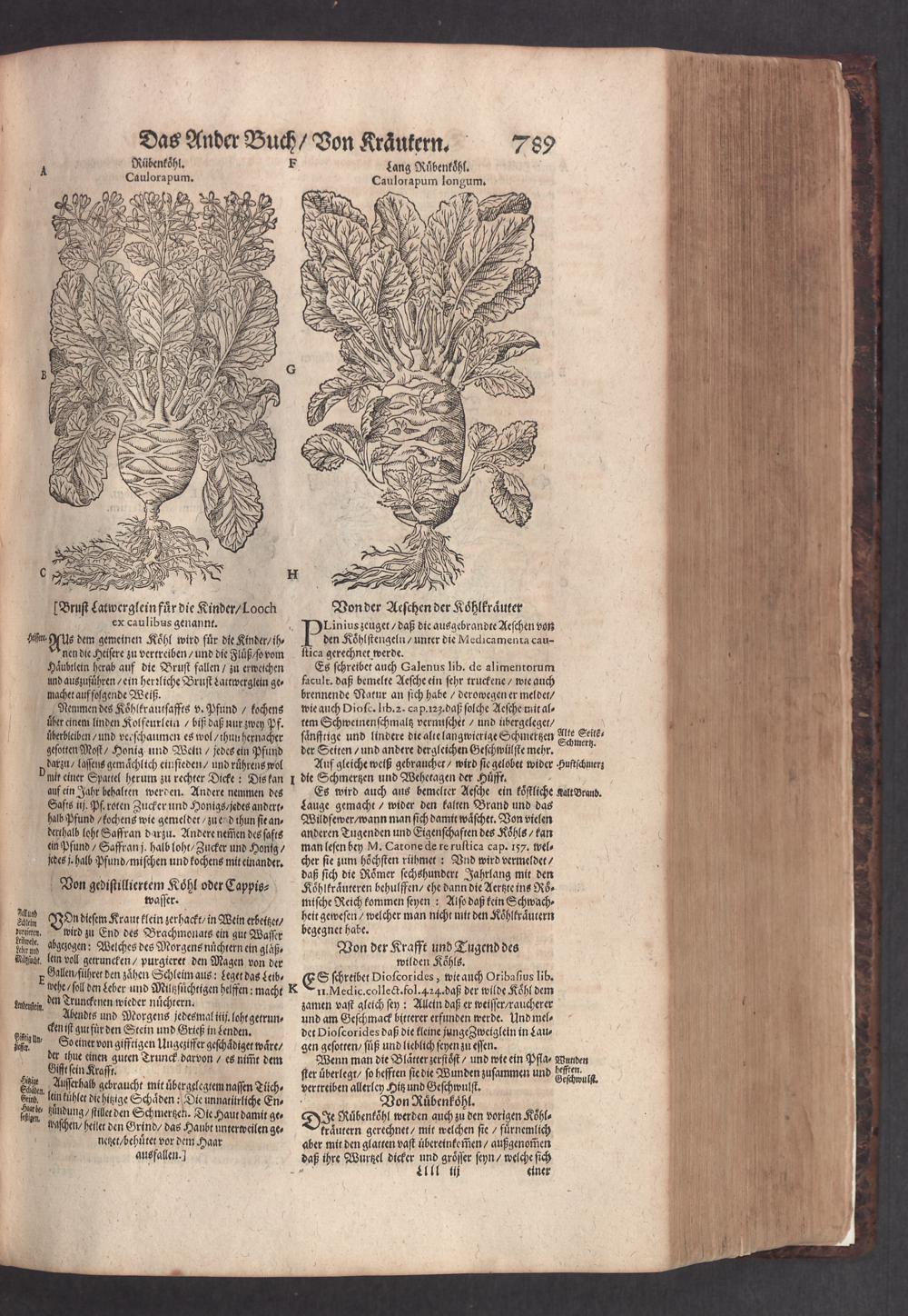 D. Jacobi Theodori Tabernaemontani, Neu vollkommen Kräuter-Buch : Darinnen Uber 3000. Kräuter/ mit schönen und kunstlichen Figuren/ auch deren Underscheid und Würckung/ samt ihren Namen in mancherley Sprachen/ beschrieben: Desgleichen auch/ wie dieselbige in allerhand Kranckheiten/ beyde der Menschen und des Viehs/ sollen angewendet und gebraucht werden/ angezeigt wird. Erstlichen durch Casparum Bauhinum D. und Profess. Basil. mit vielen neuen Figuren/ nutzlichen Artzneyen/ und anderem/ mit sonderem Fleis gebesseret/ Zum Andern Durch Hieronymum Bauhinum D. und Profess. Basil. mit sehr nutzlichen Marginalien, Synonimis, neuen Registeren und anderem vermehrt