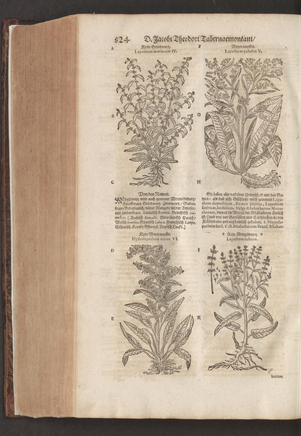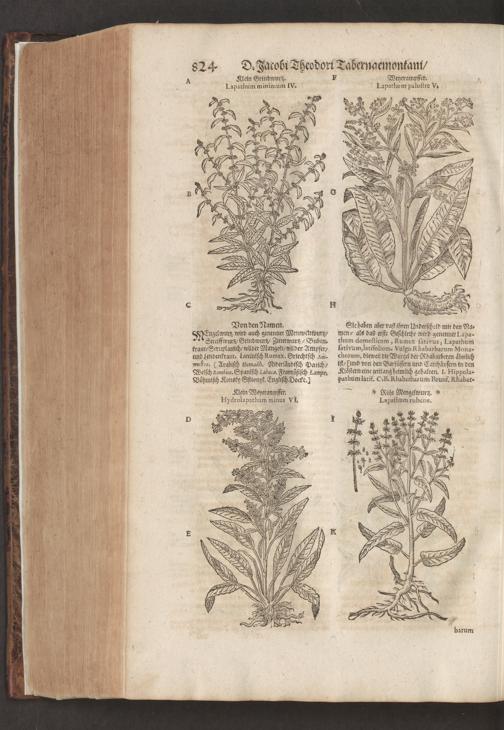 D. Jacobi Theodori Tabernaemontani, Neu vollkommen Kräuter-Buch : Darinnen Uber 3000. Kräuter/ mit schönen und kunstlichen Figuren/ auch deren Underscheid und Würckung/ samt ihren Namen in mancherley Sprachen/ beschrieben: Desgleichen auch/ wie dieselbige in allerhand Kranckheiten/ beyde der Menschen und des Viehs/ sollen angewendet und gebraucht werden/ angezeigt wird. Erstlichen durch Casparum Bauhinum D. und Profess. Basil. mit vielen neuen Figuren/ nutzlichen Artzneyen/ und anderem/ mit sonderem Fleis gebesseret/ Zum Andern Durch Hieronymum Bauhinum D. und Profess. Basil. mit sehr nutzlichen Marginalien, Synonimis, neuen Registeren und anderem vermehrt