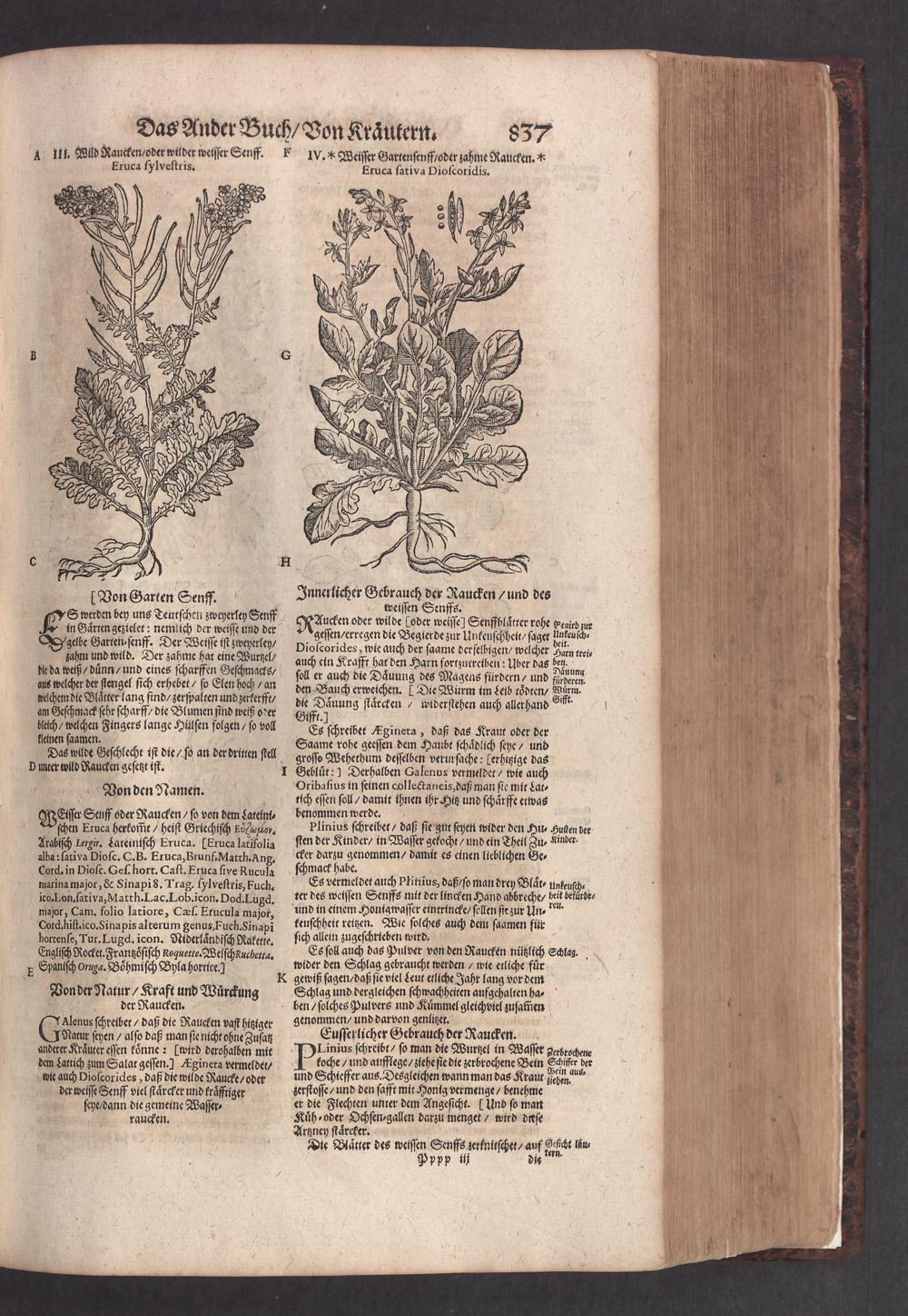 D. Jacobi Theodori Tabernaemontani, Neu vollkommen Kräuter-Buch : Darinnen Uber 3000. Kräuter/ mit schönen und kunstlichen Figuren/ auch deren Underscheid und Würckung/ samt ihren Namen in mancherley Sprachen/ beschrieben: Desgleichen auch/ wie dieselbige in allerhand Kranckheiten/ beyde der Menschen und des Viehs/ sollen angewendet und gebraucht werden/ angezeigt wird. Erstlichen durch Casparum Bauhinum D. und Profess. Basil. mit vielen neuen Figuren/ nutzlichen Artzneyen/ und anderem/ mit sonderem Fleis gebesseret/ Zum Andern Durch Hieronymum Bauhinum D. und Profess. Basil. mit sehr nutzlichen Marginalien, Synonimis, neuen Registeren und anderem vermehrt