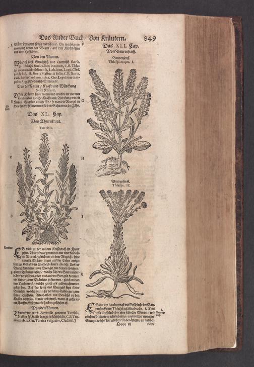 D. Jacobi Theodori Tabernaemontani, Neu vollkommen Kräuter-Buch : Darinnen Uber 3000. Kräuter/ mit schönen und kunstlichen Figuren/ auch deren Underscheid und Würckung/ samt ihren Namen in mancherley Sprachen/ beschrieben: Desgleichen auch/ wie dieselbige in allerhand Kranckheiten/ beyde der Menschen und des Viehs/ sollen angewendet und gebraucht werden/ angezeigt wird. Erstlichen durch Casparum Bauhinum D. und Profess. Basil. mit vielen neuen Figuren/ nutzlichen Artzneyen/ und anderem/ mit sonderem Fleis gebesseret/ Zum Andern Durch Hieronymum Bauhinum D. und Profess. Basil. mit sehr nutzlichen Marginalien, Synonimis, neuen Registeren und anderem vermehrt