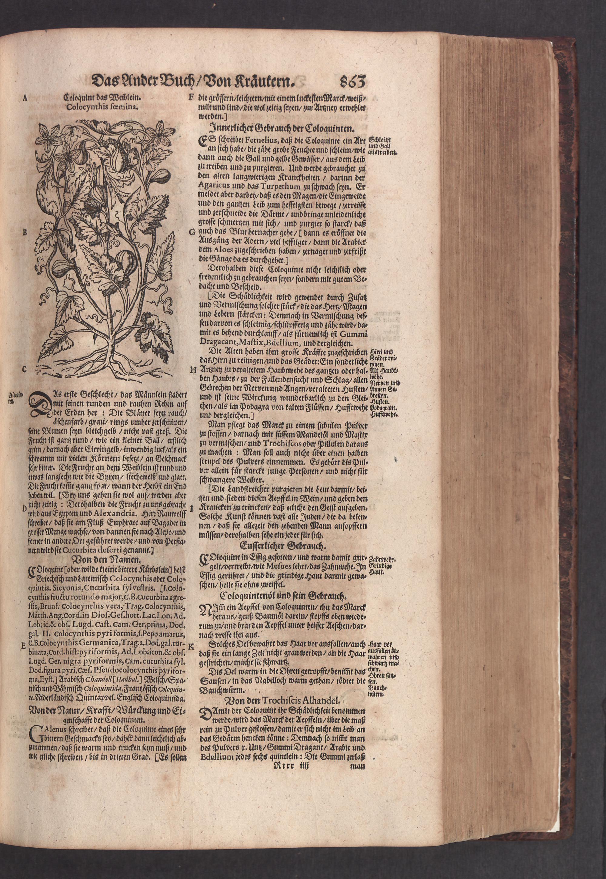 D. Jacobi Theodori Tabernaemontani, Neu vollkommen Kräuter-Buch : Darinnen Uber 3000. Kräuter/ mit schönen und kunstlichen Figuren/ auch deren Underscheid und Würckung/ samt ihren Namen in mancherley Sprachen/ beschrieben: Desgleichen auch/ wie dieselbige in allerhand Kranckheiten/ beyde der Menschen und des Viehs/ sollen angewendet und gebraucht werden/ angezeigt wird. Erstlichen durch Casparum Bauhinum D. und Profess. Basil. mit vielen neuen Figuren/ nutzlichen Artzneyen/ und anderem/ mit sonderem Fleis gebesseret/ Zum Andern Durch Hieronymum Bauhinum D. und Profess. Basil. mit sehr nutzlichen Marginalien, Synonimis, neuen Registeren und anderem vermehrt