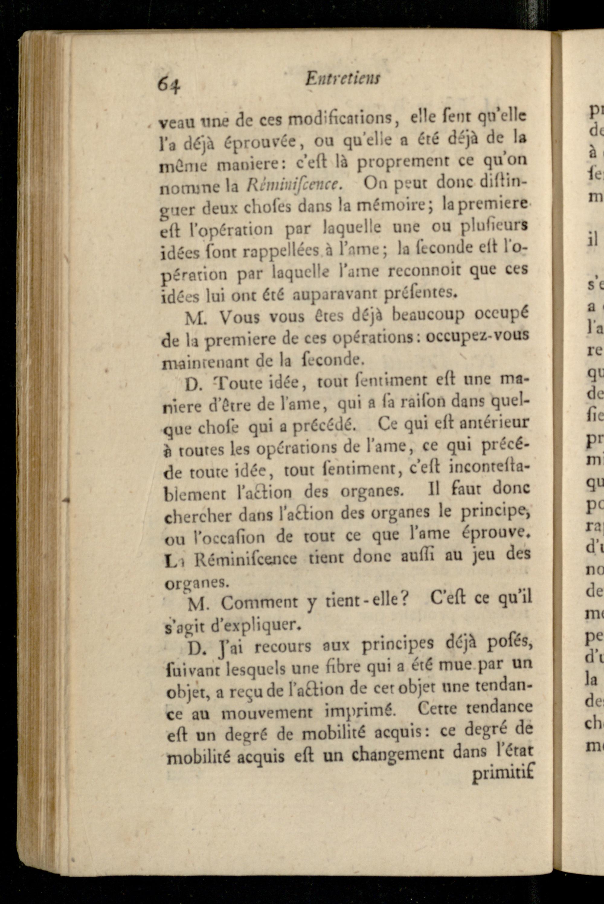 Entretien VI. Confidérations sur la réminiscence, sur la naissance de l'habitude,...