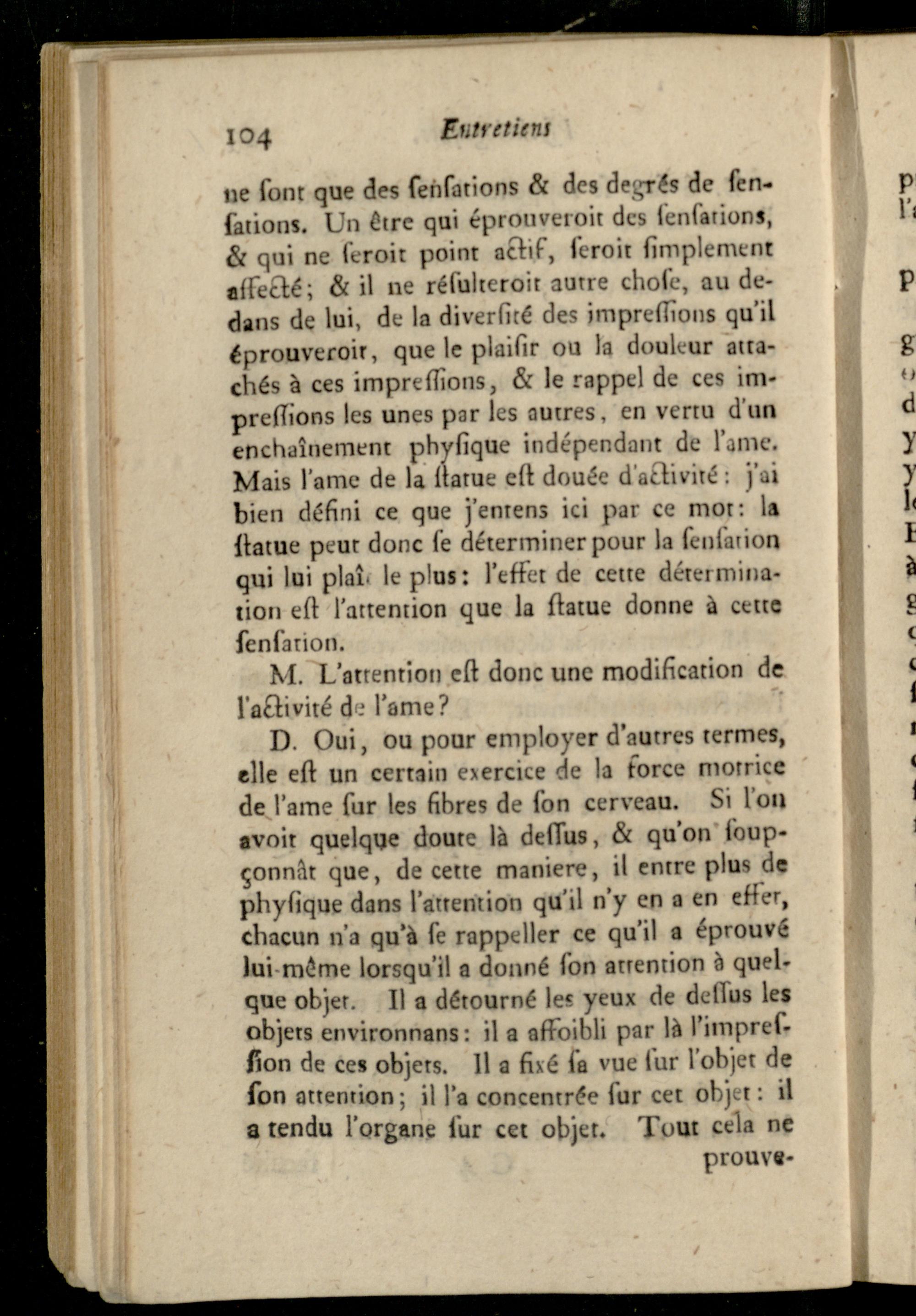 Entretien VIII. Sur la faculté de sentir confidérée comme une branche de l'activité de l'ame, et comme le principe de l'attention.