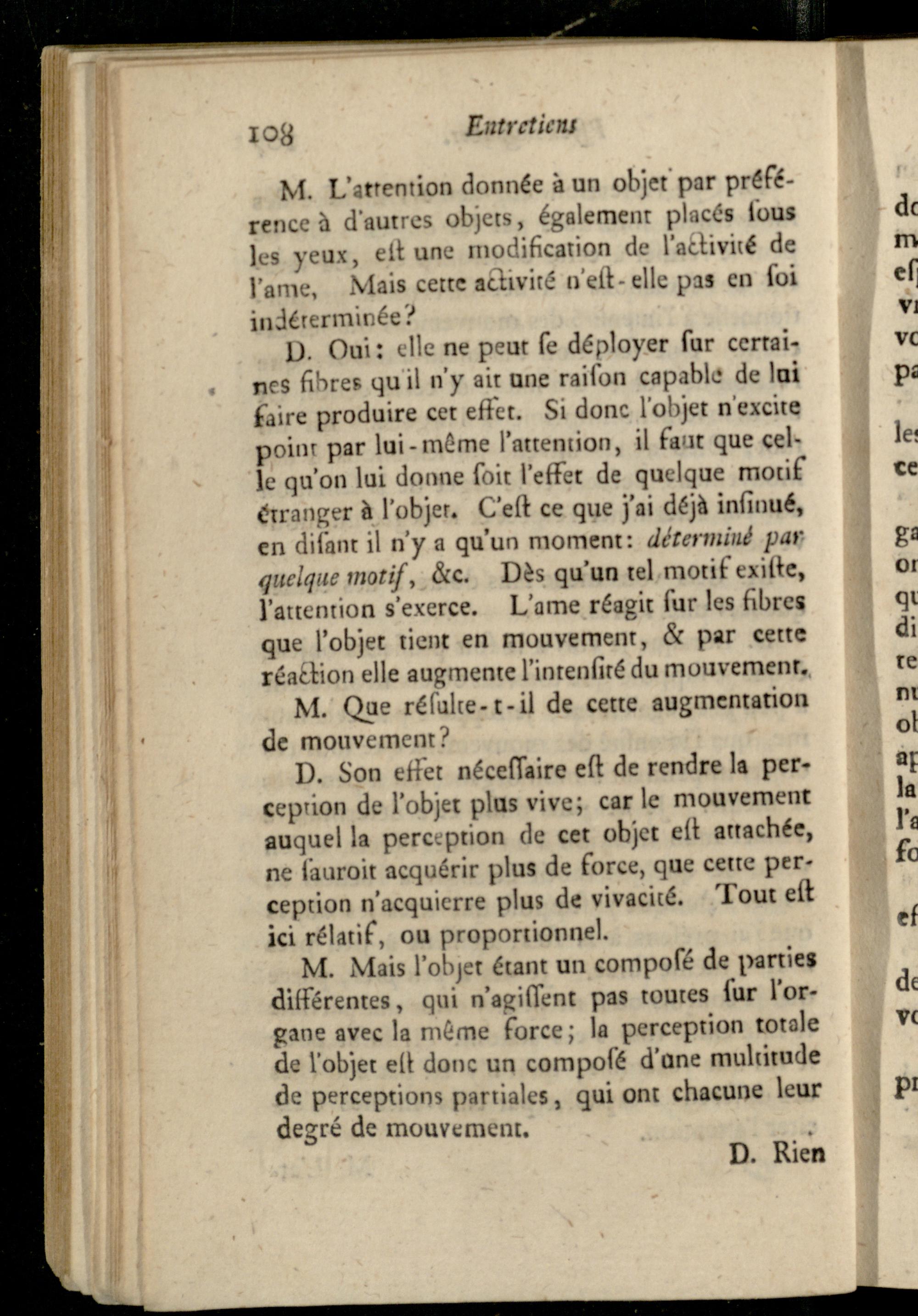 Entretien VIII. Sur la faculté de sentir confidérée comme une branche de l'activité de l'ame, et comme le principe de l'attention.