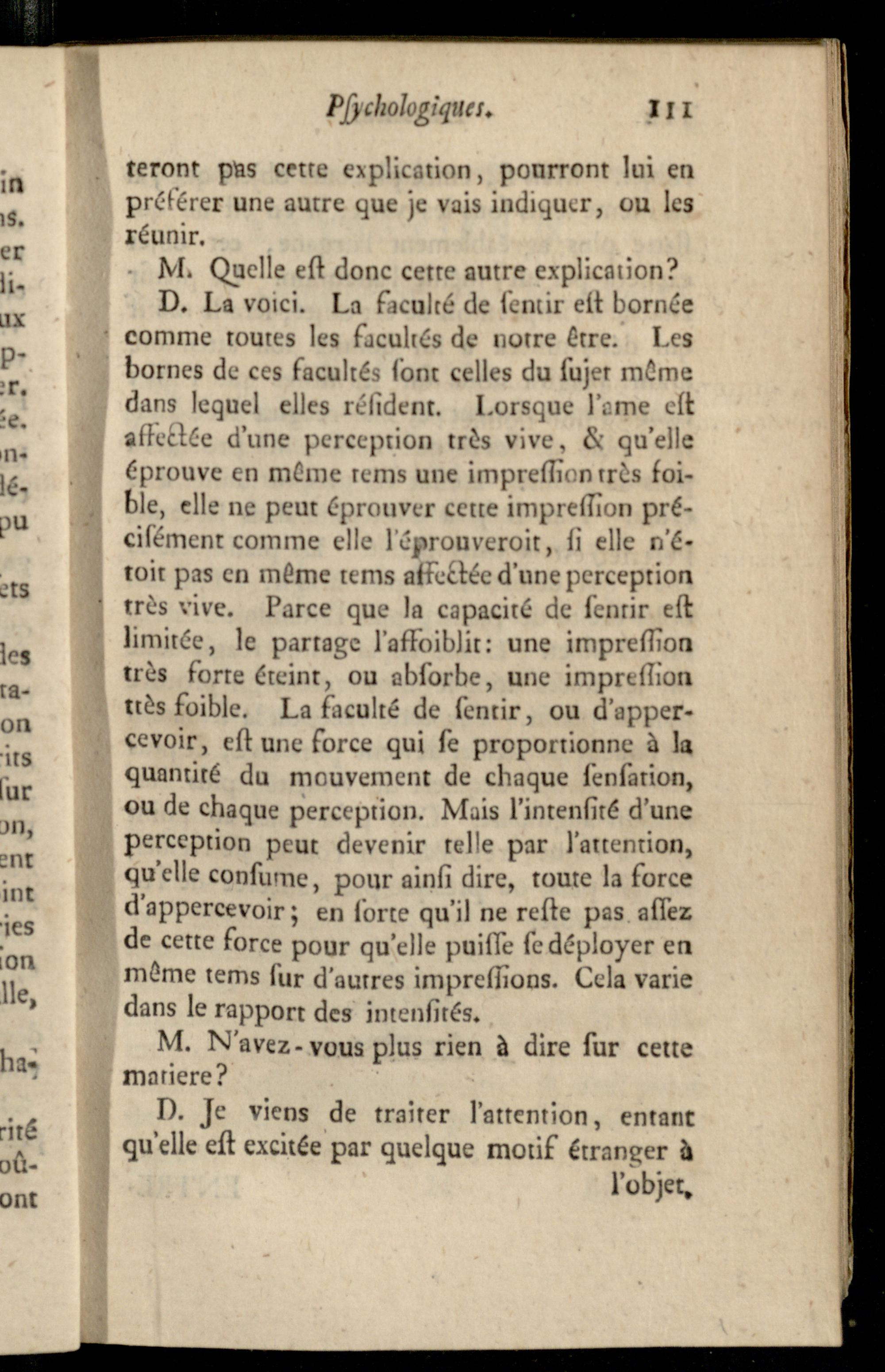 Entretien VIII. Sur la faculté de sentir confidérée comme une branche de l'activité de l'ame, et comme le principe de l'attention.