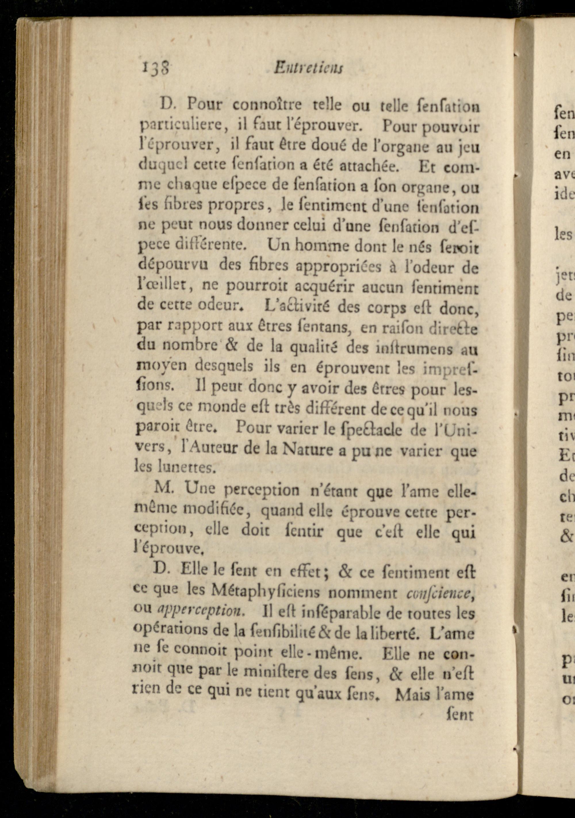 Entretien VIII. Sur la faculté de sentir confidérée comme une branche de l'activité de l'ame, et comme le principe de l'attention.