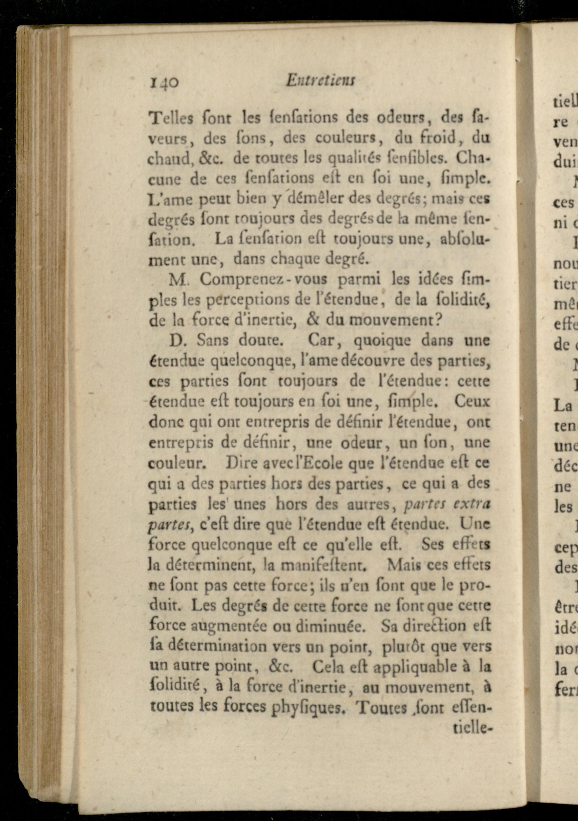Entretien VIII. Sur la faculté de sentir confidérée comme une branche de l'activité de l'ame, et comme le principe de l'attention.
