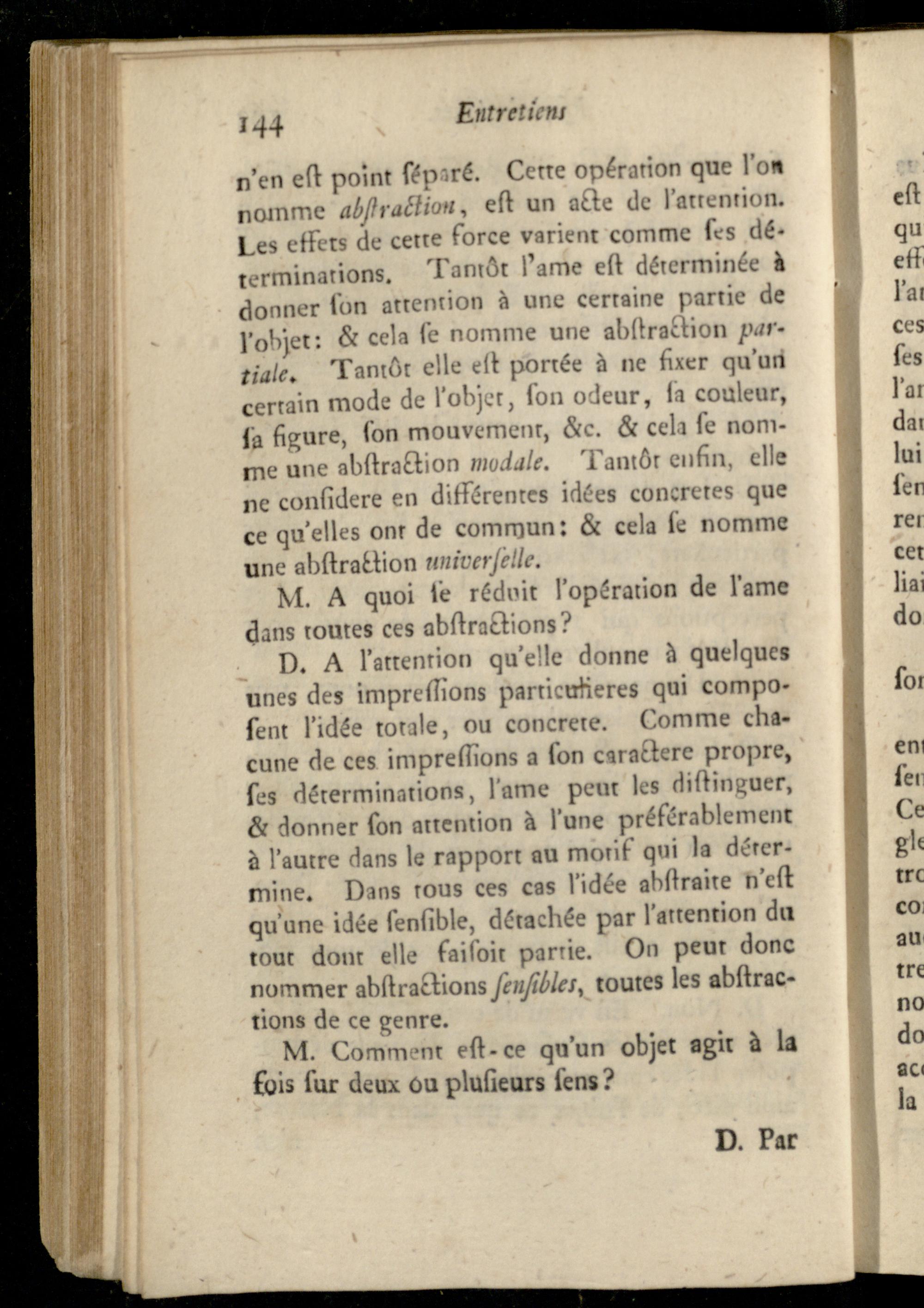 Entretien VIII. Sur la faculté de sentir confidérée comme une branche de l'activité de l'ame, et comme le principe de l'attention.