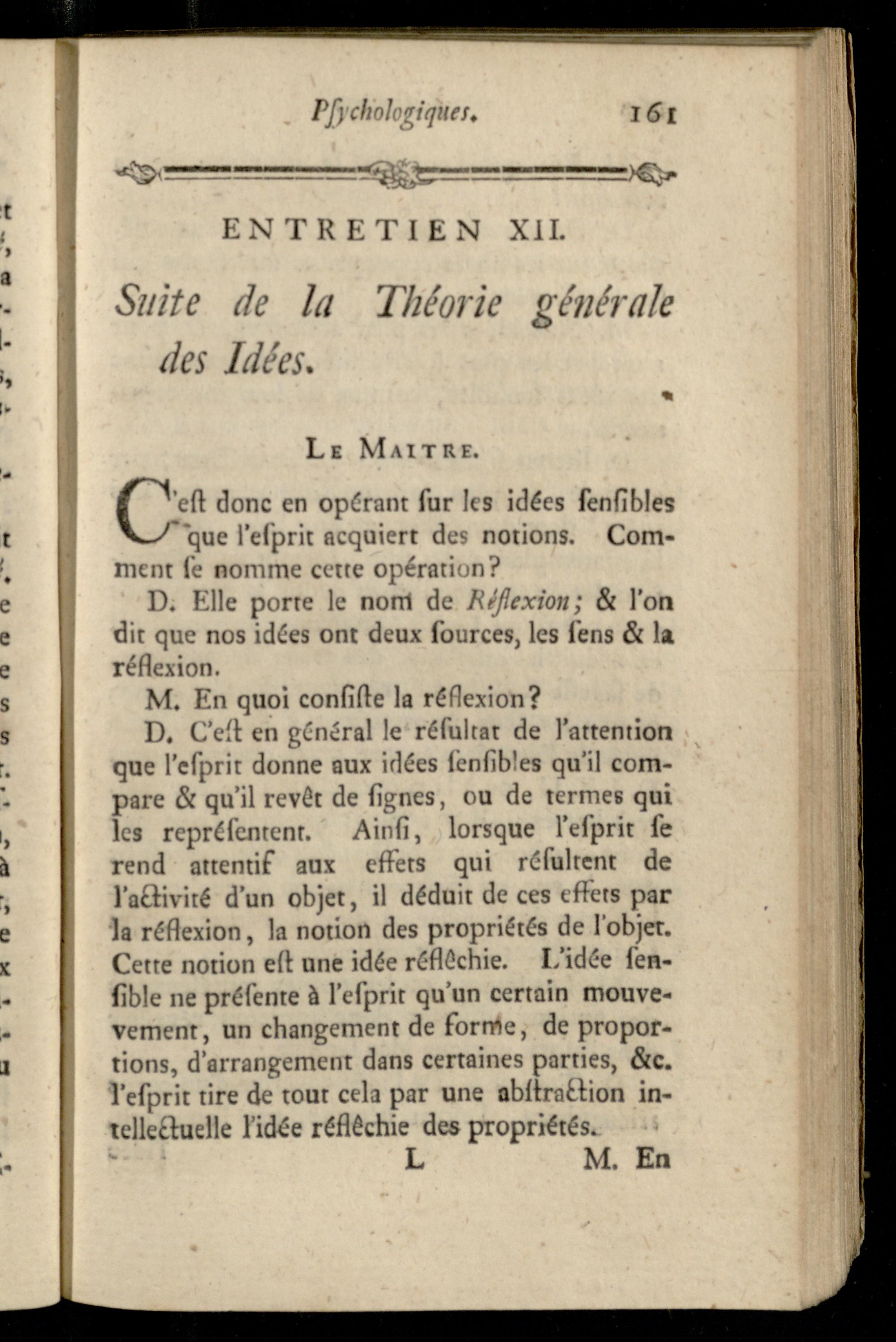 Entretiens Psychologiques, tirés de l'Essai analytique sur les facultés de l'Ame...