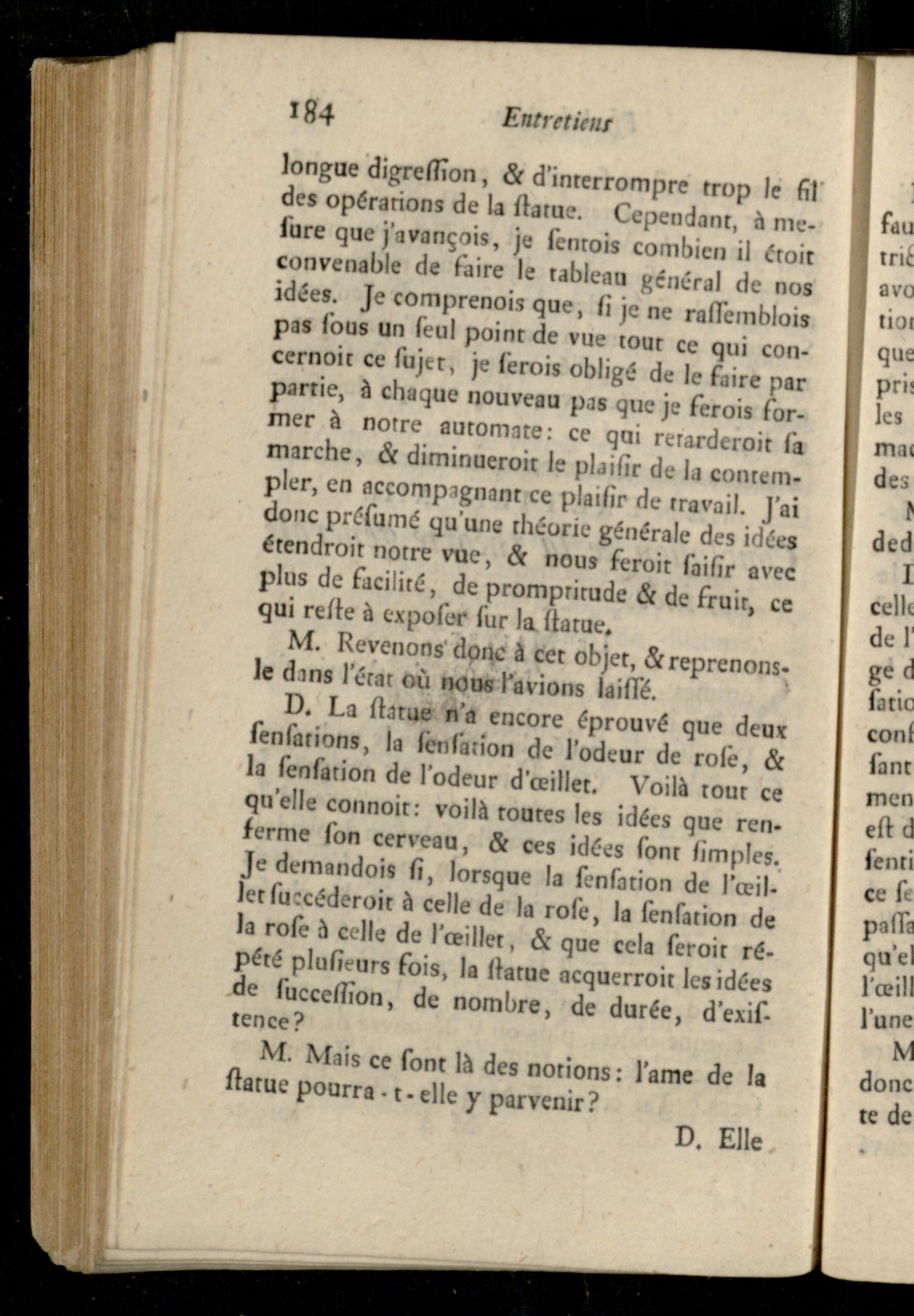 Entretien II. Sur l'Homme, confidéré d'abord en général, et ensuite sous l'idée d'une statue, dont les sens agiroient séparément, ou successivement.