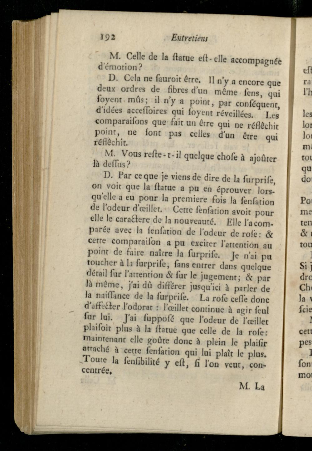Entretien XIX. De l'état de la statue, dans la supposition que toutes les fibres de l'odorat ont été mises en jeu.