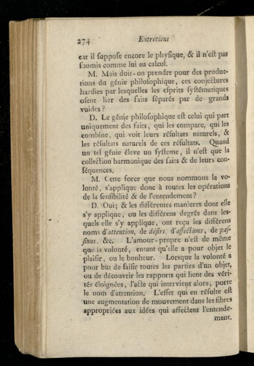 Entretien VIII. Sur la faculté de sentir confidérée comme une branche de l'activité de l'ame, et comme le principe de l'attention.