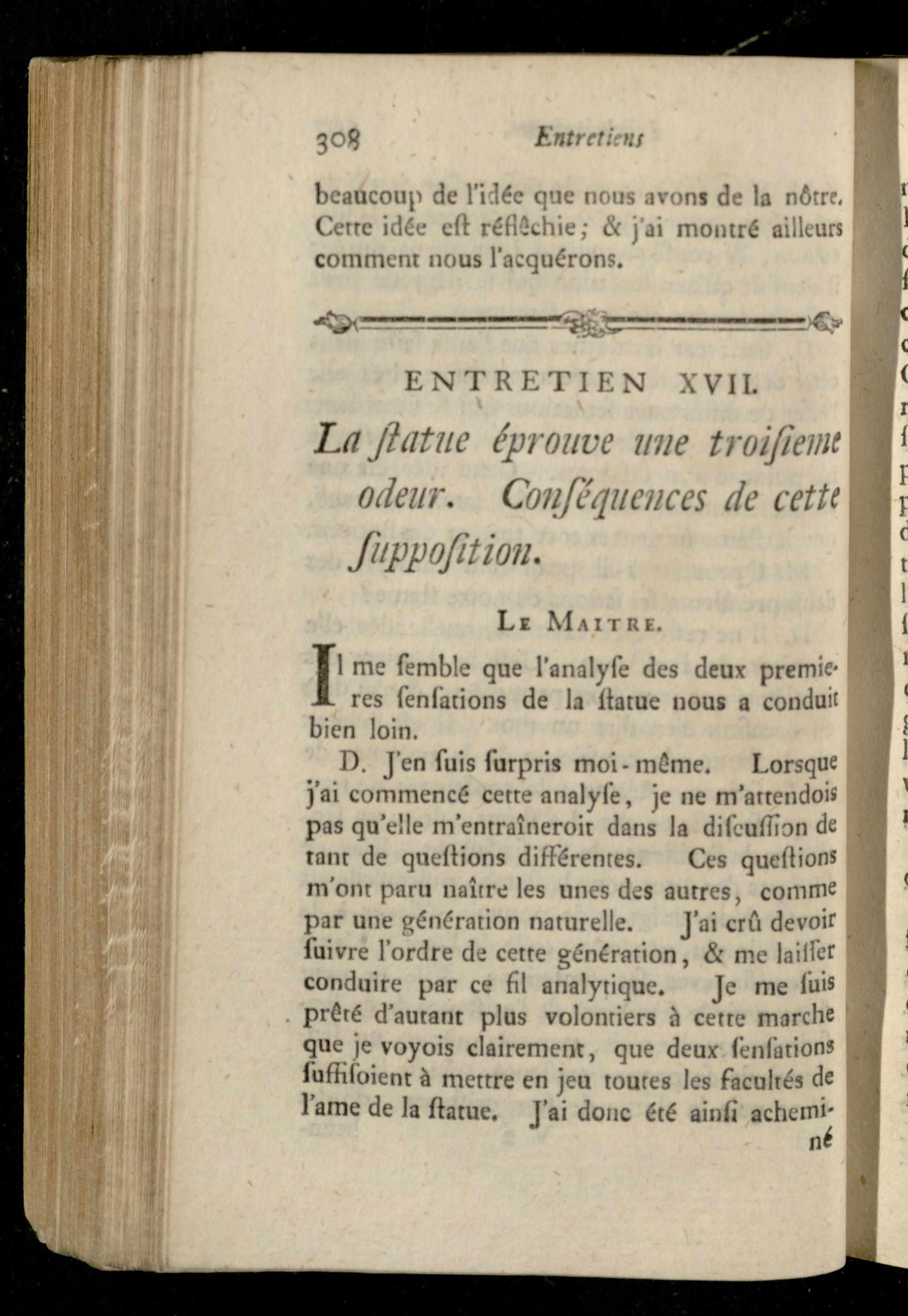 Entretien XVII. La statue éprouve une troisieme odeur. Conséquences de cette supposition.