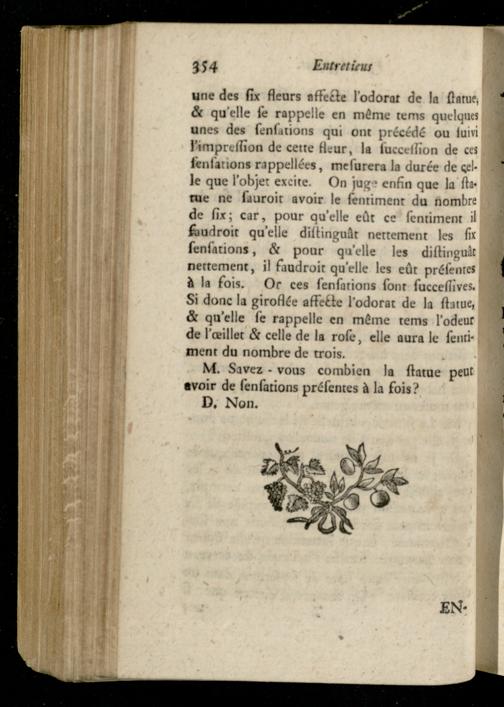 Entretien IV. La Statue modifiée par le sens de l'Odorat, et l'état qui suit cette premiere sensation.