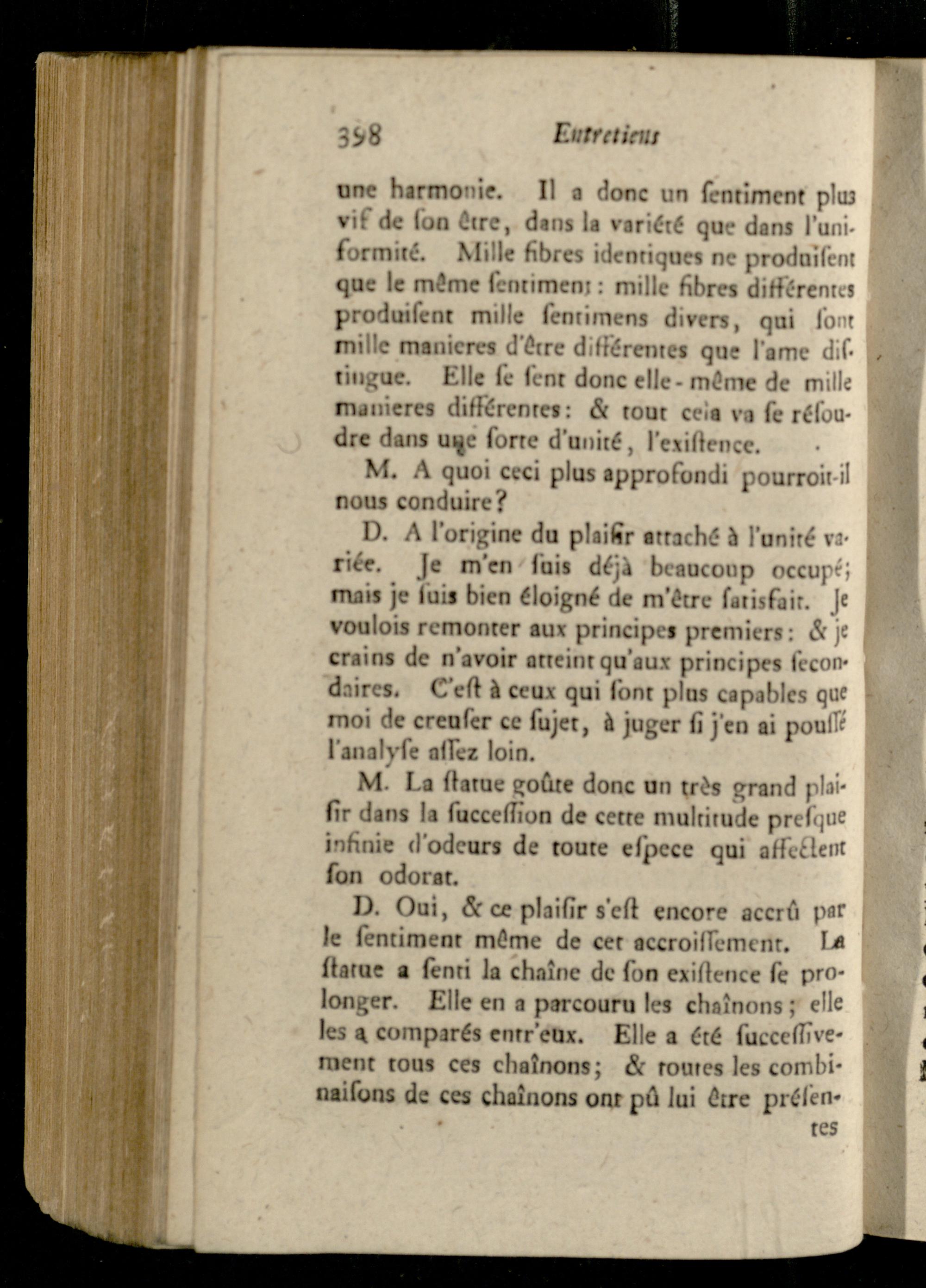 Entretien II. Sur l'Homme, confidéré d'abord en général, et ensuite sous l'idée d'une statue, dont les sens agiroient séparément, ou successivement.