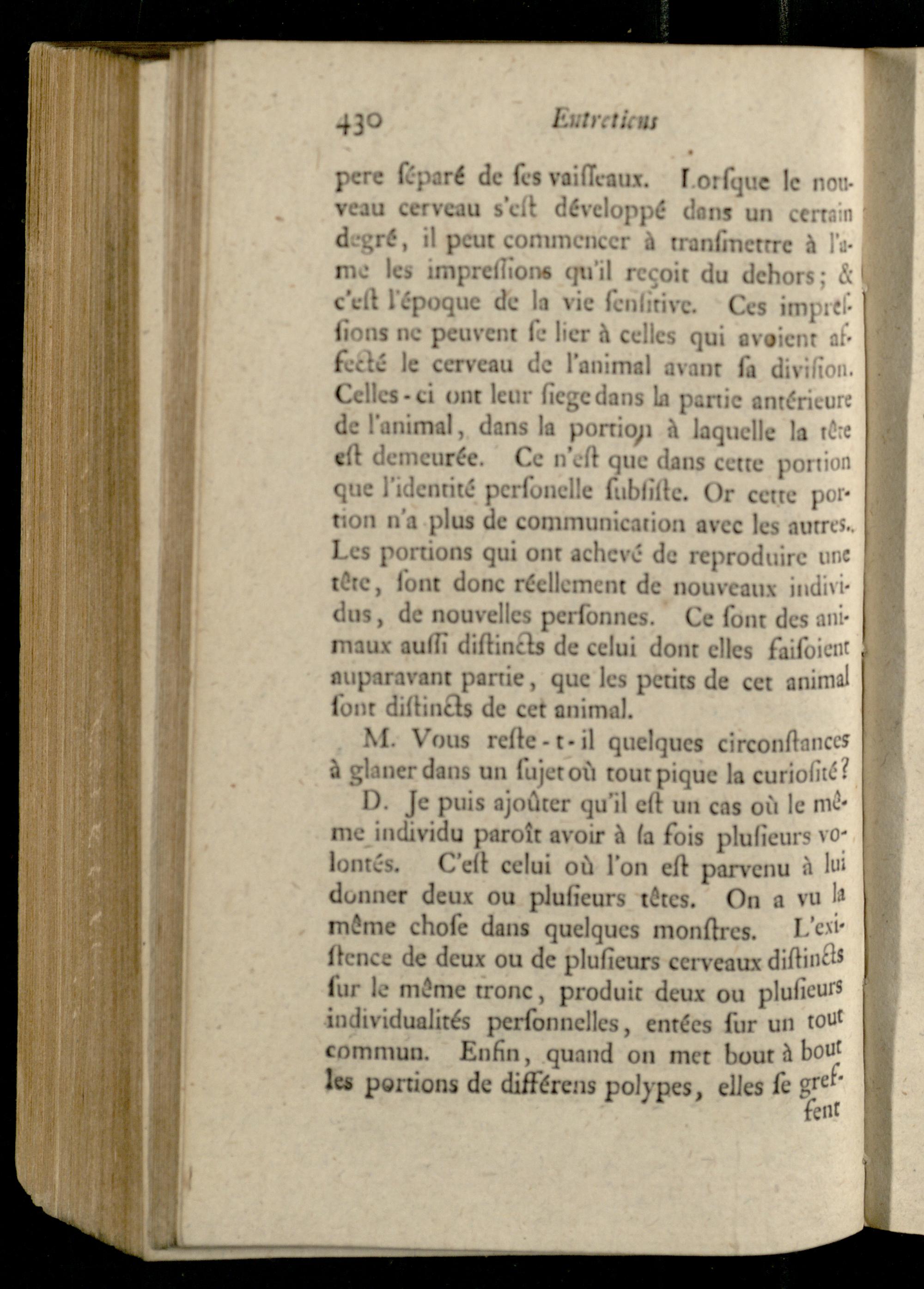 Entretien VI. Confidérations sur la réminiscence, sur la naissance de l'habitude, sur le plaisir attaché a la nouveauté, et sur la personalité.