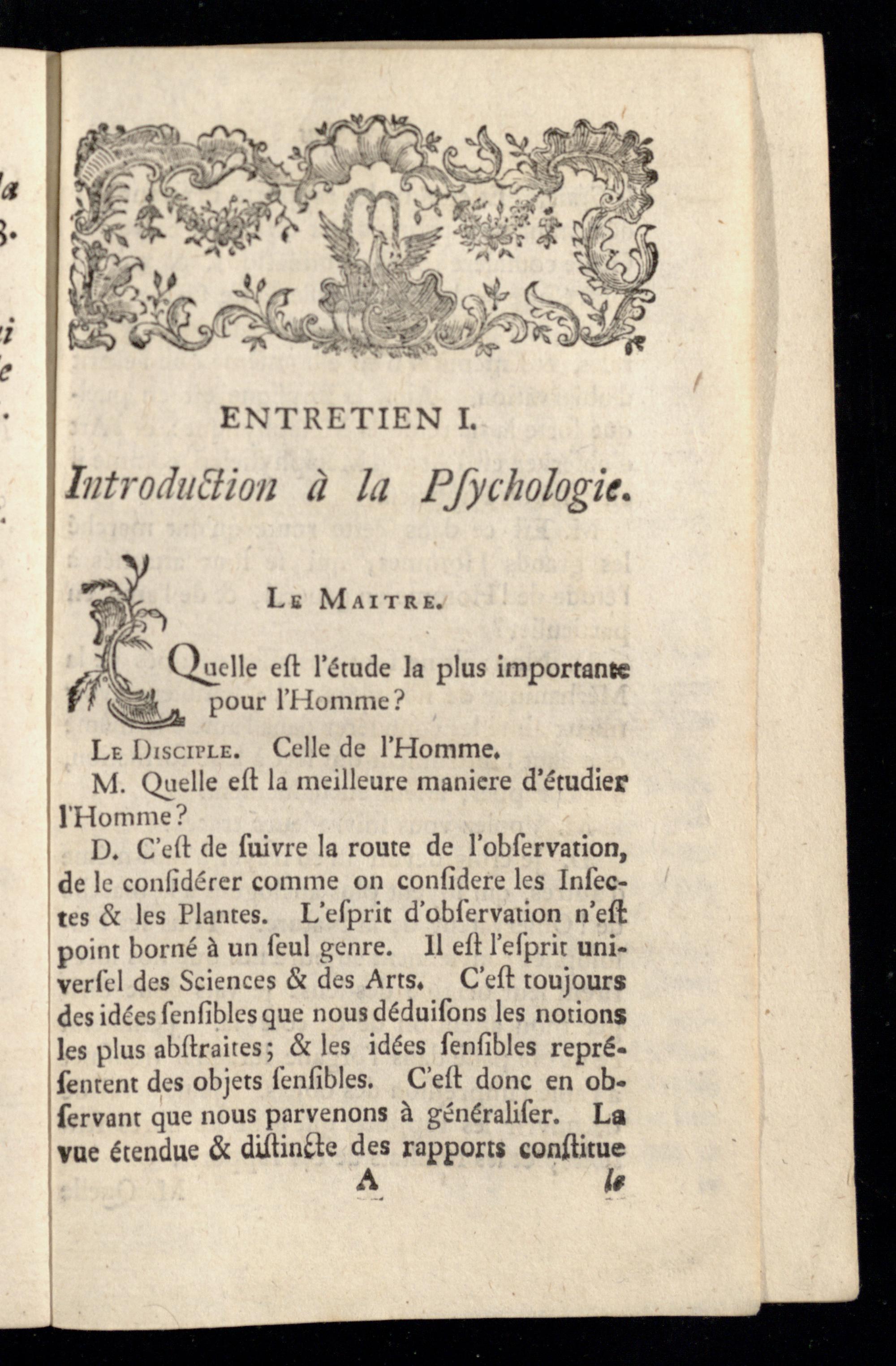 Entretiens Psychologiques, tirés de l'Essai analytique sur les facultés de l'Ame de Mr. Bonnet / par Mr. Formey