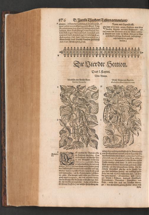 D. Jacobi Theodori Tabernaemontani, Neu vollkommen Kräuter-Buch : Darinnen Uber 3000. Kräuter/ mit schönen und kunstlichen Figuren/ auch deren Underscheid und Würckung/ samt ihren Namen in mancherley Sprachen/ beschrieben: Desgleichen auch/ wie dieselbige in allerhand Kranckheiten/ beyde der Menschen und des Viehs/ sollen angewendet und gebraucht werden/ angezeigt wird. Erstlichen durch Casparum Bauhinum D. und Profess. Basil. mit vielen neuen Figuren/ nutzlichen Artzneyen/ und anderem/ mit sonderem Fleis gebesseret/ Zum Andern Durch Hieronymum Bauhinum D. und Profess. Basil. mit sehr nutzlichen Marginalien, Synonimis, neuen Registeren und anderem vermehrt