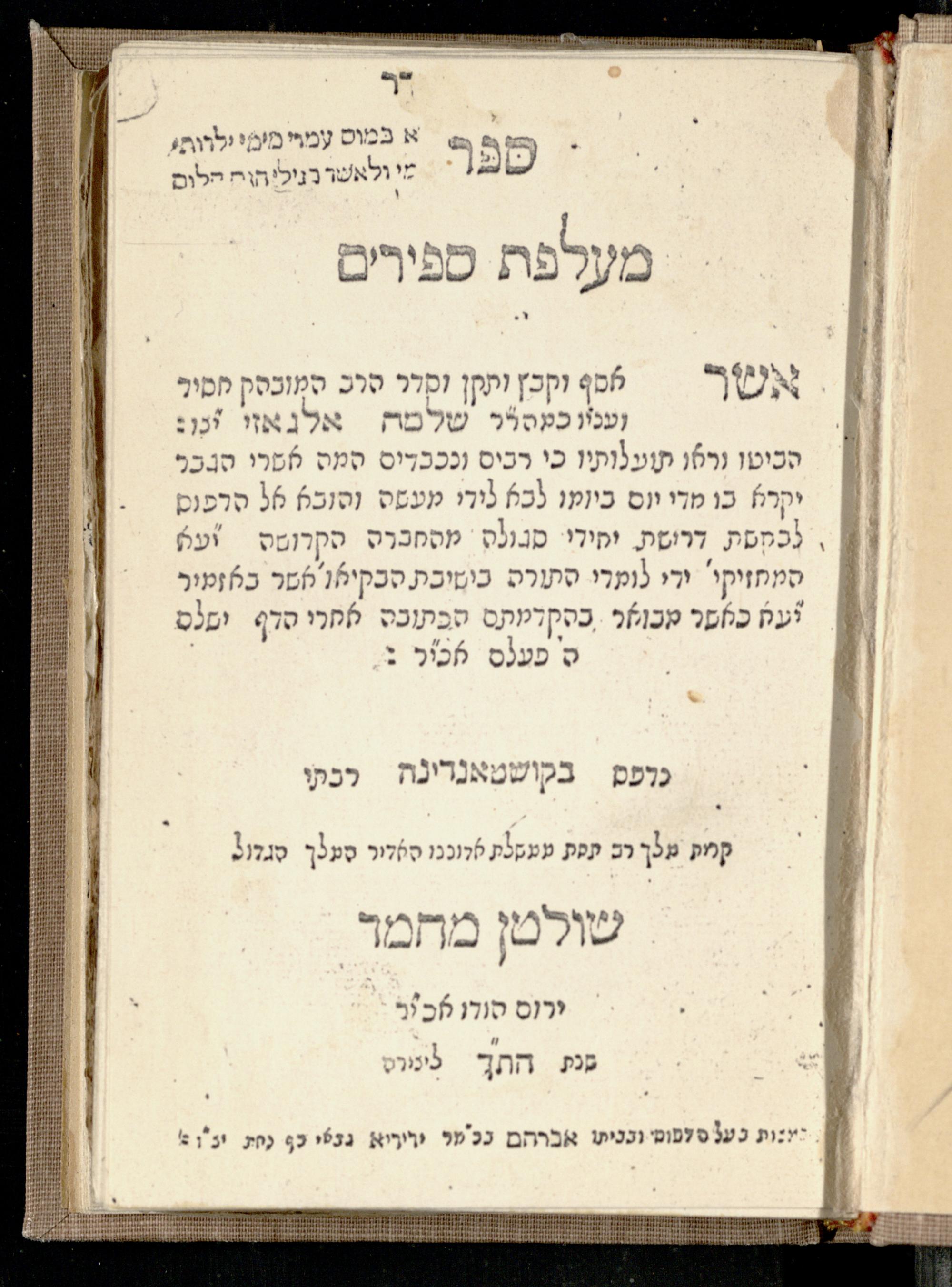 Sefer Meʿulefet sapirim / asher asaf ṿe-ḳibets ṿe-tiḳen ṿe-sider ha-rav ... Shelomoh Algazi y.ts.ṿ.ספר מעפלת ספירים / אשר אסף וקבץ ותקן וסדר הרב ... שלמה אלגאזי יצ״ו