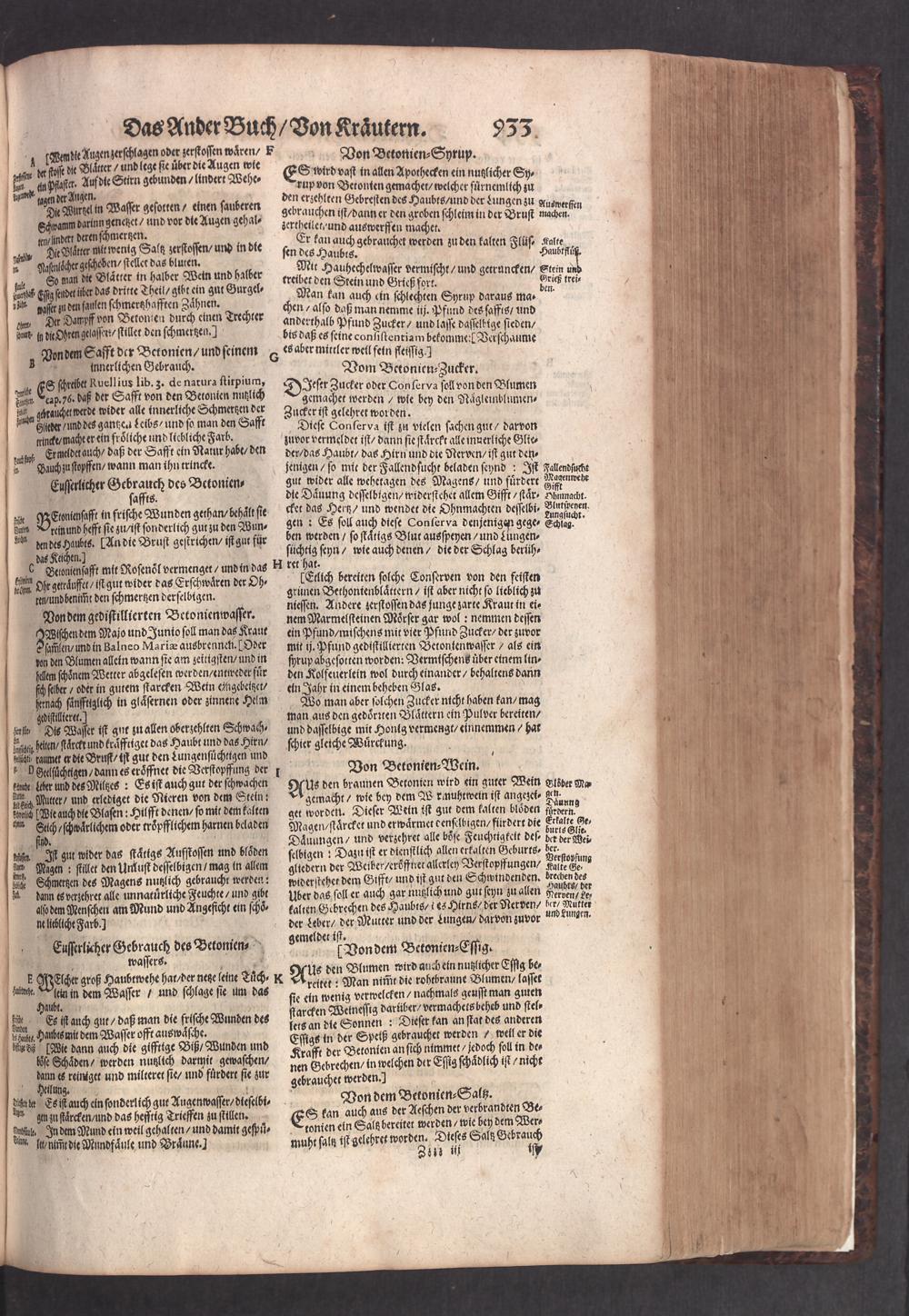 D. Jacobi Theodori Tabernaemontani, Neu vollkommen Kräuter-Buch : Darinnen Uber 3000. Kräuter/ mit schönen und kunstlichen Figuren/ auch deren Underscheid und Würckung/ samt ihren Namen in mancherley Sprachen/ beschrieben: Desgleichen auch/ wie dieselbige in allerhand Kranckheiten/ beyde der Menschen und des Viehs/ sollen angewendet und gebraucht werden/ angezeigt wird. Erstlichen durch Casparum Bauhinum D. und Profess. Basil. mit vielen neuen Figuren/ nutzlichen Artzneyen/ und anderem/ mit sonderem Fleis gebesseret/ Zum Andern Durch Hieronymum Bauhinum D. und Profess. Basil. mit sehr nutzlichen Marginalien, Synonimis, neuen Registeren und anderem vermehrt