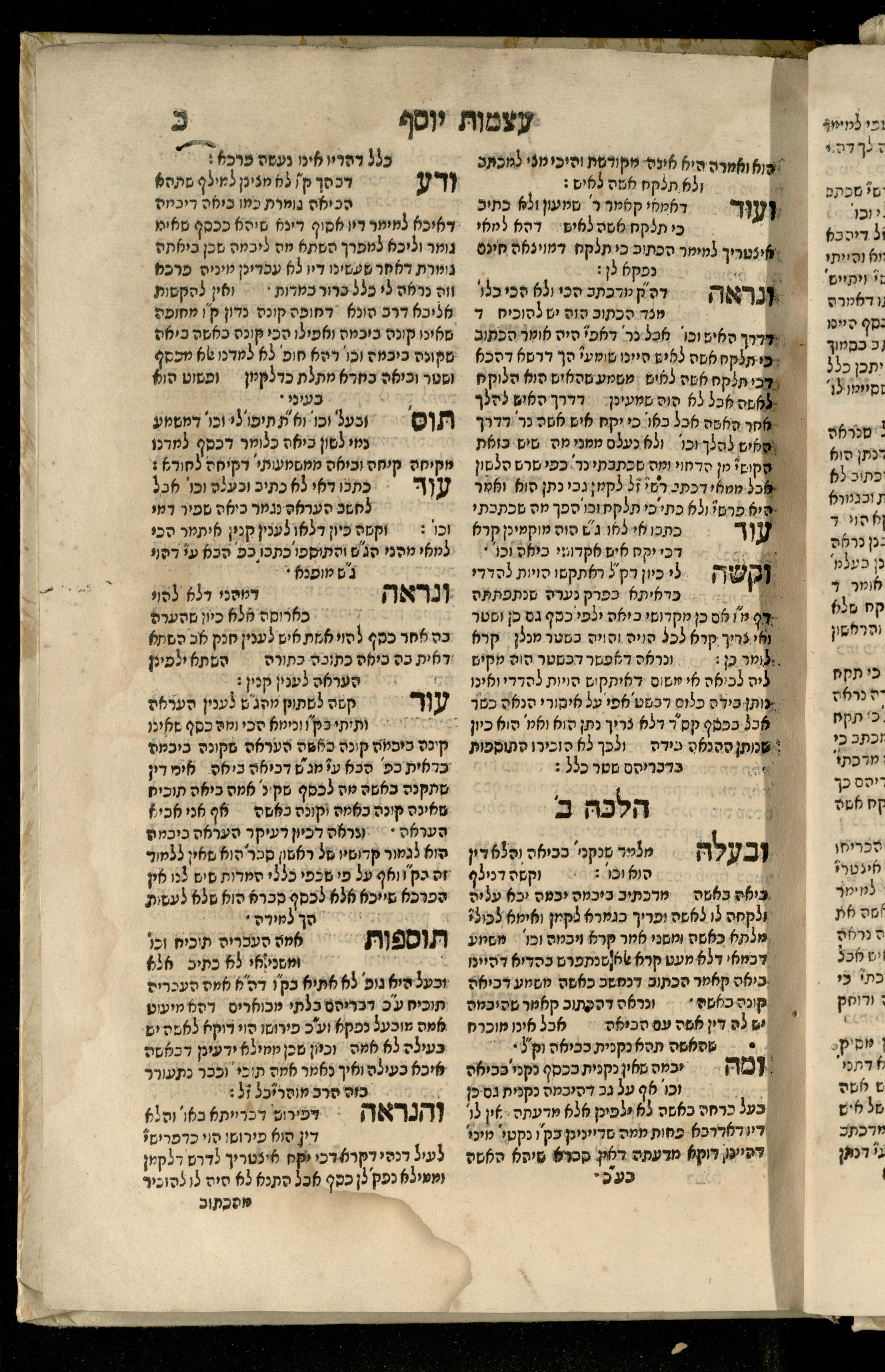 Sefer ʿAtsmot Yosef : ṿe-hu beʾur kelalim meḥudashim she-ha-Torah nidreshet ba-hem ... : gam ba ha-beʾur be-ʿiyun u-ve-filpul nimrats be-masekhet Ḳidushin mi-teḥilatah ʿad sofah ... gam ... be-sugyat Parah ṿe-Raḥel be-p. Kol ha-baśar u-ve-sof pereḳ Ketsad ha-regel ... / ḥibartiṿ ṿe-gam yisadtiṿ ani ha-tsaʿir Yosef ben Yitsḥaḳ ... n. ʿEzra ...ספר עצמות יוסף : והוא ביאור כללים מחודשים שהתורה נדרשת בהם ... : גם בא הבאור בעיון בעיון ובפלפול נמרץ במסכת קידושין מתחילתה עד סופה ... גם ... בסוגיית פרה ורחל בפ׳ כל הבשר ובסוף פרק כיצד הרגל ... / חברתיו וגם יסדתיו אני הצעיר יוסף בן יצחק ... ן׳ עזרא ...