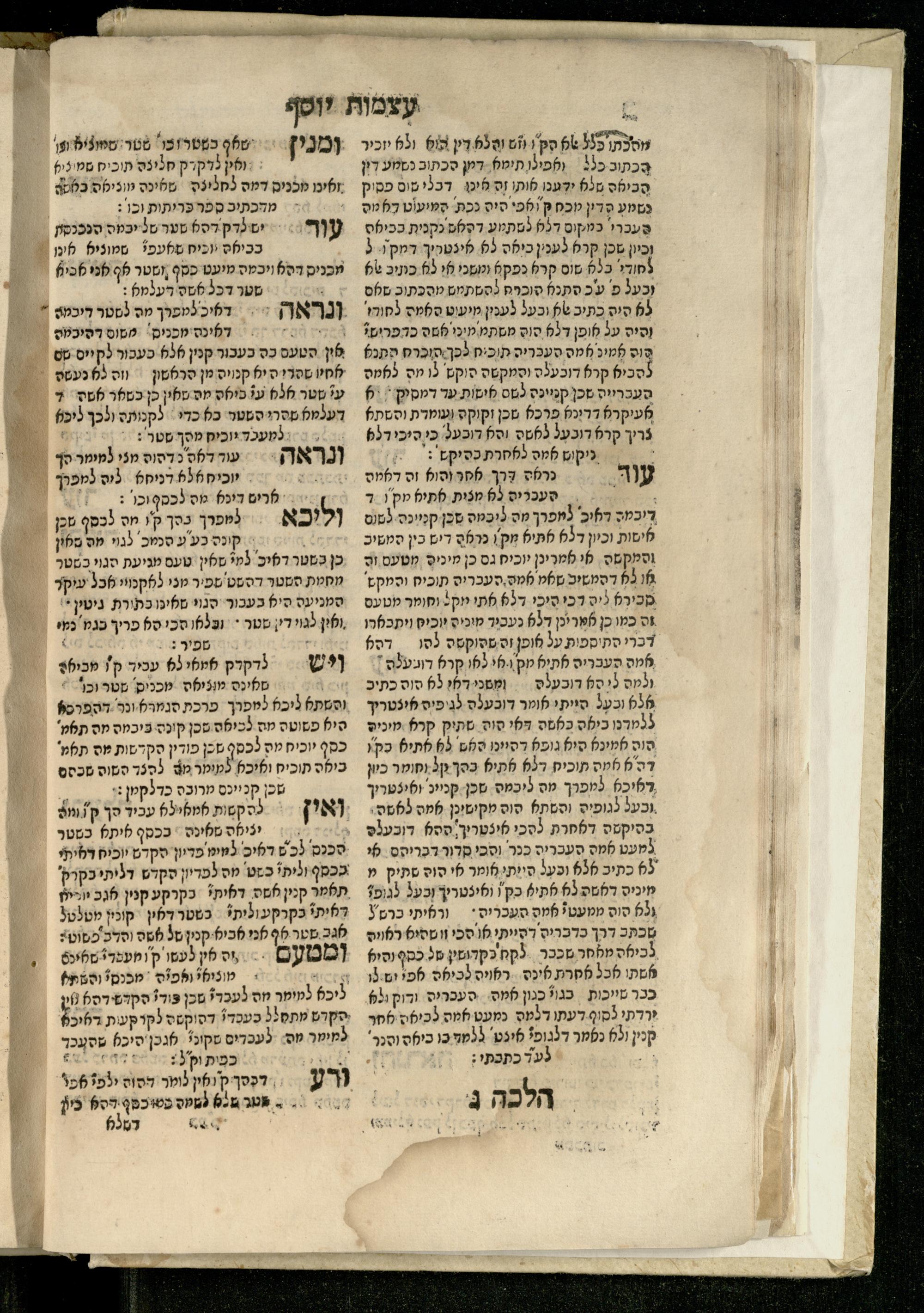 Sefer ʿAtsmot Yosef : ṿe-hu beʾur kelalim meḥudashim she-ha-Torah nidreshet ba-hem ... : gam ba ha-beʾur be-ʿiyun u-ve-filpul nimrats be-masekhet Ḳidushin mi-teḥilatah ʿad sofah ... gam ... be-sugyat Parah ṿe-Raḥel be-p. Kol ha-baśar u-ve-sof pereḳ Ketsad ha-regel ... / ḥibartiṿ ṿe-gam yisadtiṿ ani ha-tsaʿir Yosef ben Yitsḥaḳ ... n. ʿEzra ...ספר עצמות יוסף : והוא ביאור כללים מחודשים שהתורה נדרשת בהם ... : גם בא הבאור בעיון בעיון ובפלפול נמרץ במסכת קידושין מתחילתה עד סופה ... גם ... בסוגיית פרה ורחל בפ׳ כל הבשר ובסוף פרק כיצד הרגל ... / חברתיו וגם יסדתיו אני הצעיר יוסף בן יצחק ... ן׳ עזרא ...